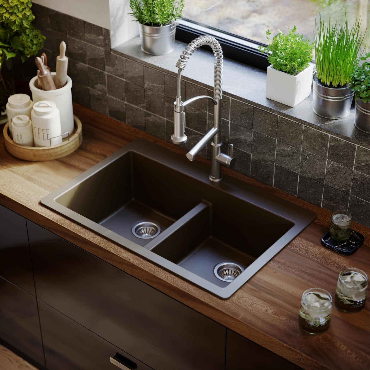 Karran Qt-810 33'' Top Mount Double Equal Bowl Quartz Kitchen Sink In Brown