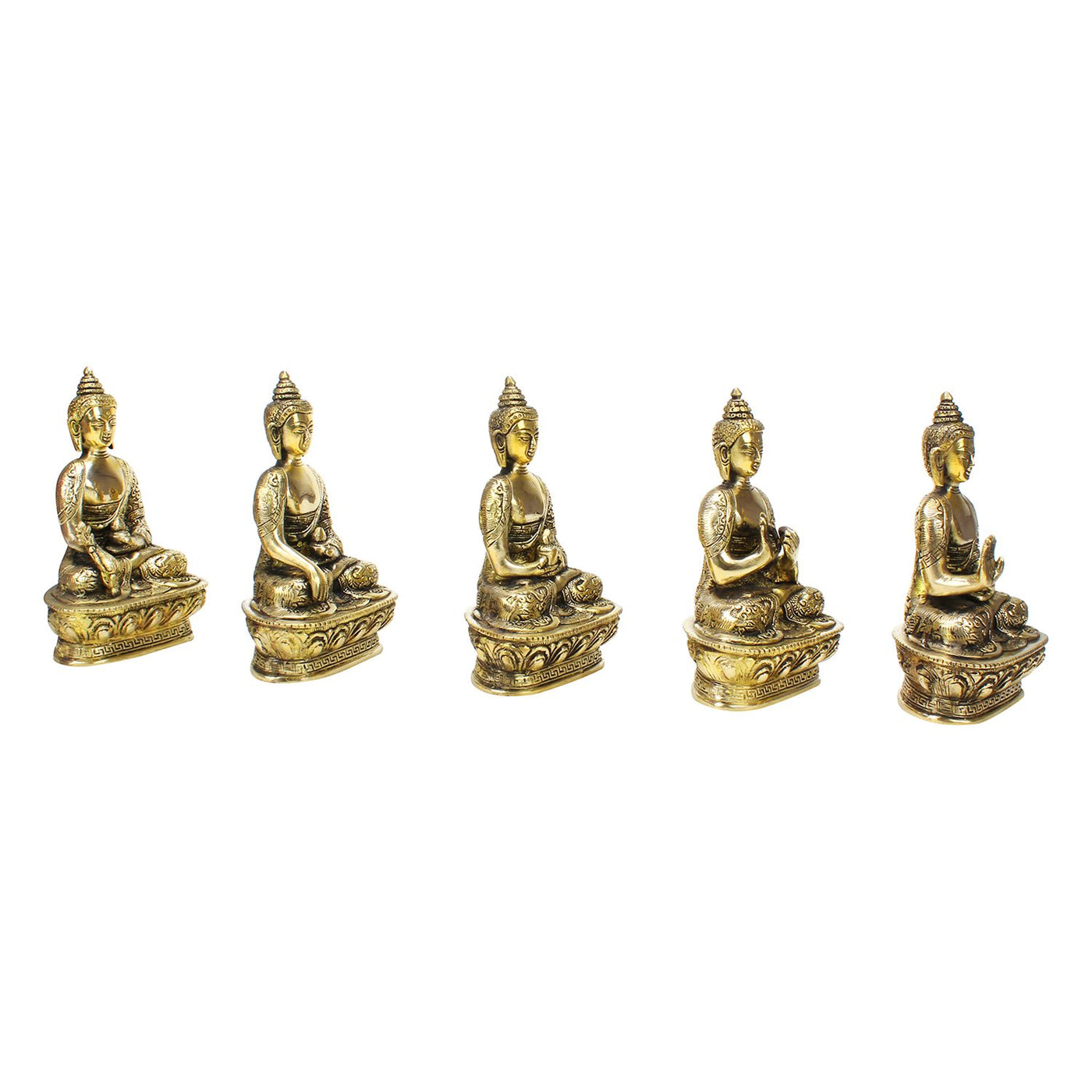 Kartique Brass Buddha Set of 5 Buddha Mudras (Meditation, Bhumisparsha, Dhyana,Dharmachakra and Abhaya Mudra) - Brass Statue Hei