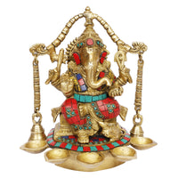 Kartique Brass Ganesh Bhagwan Idol Ganesha Statue Ganpati Murti For Home Entrance Decor Diwali Gift Ganesha With Multi Diya And