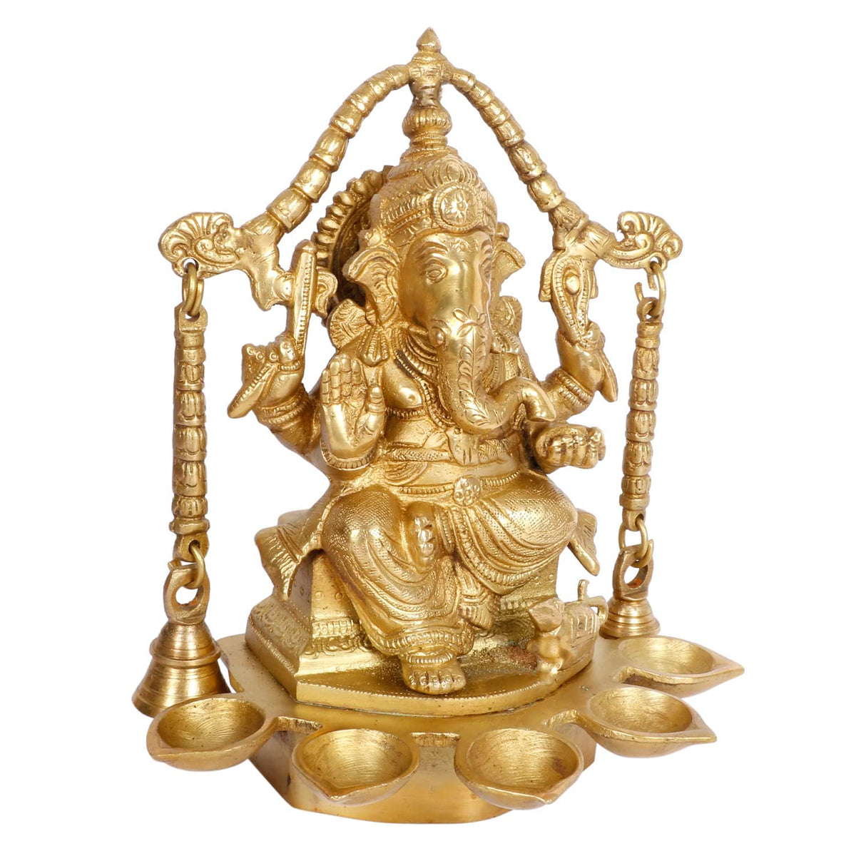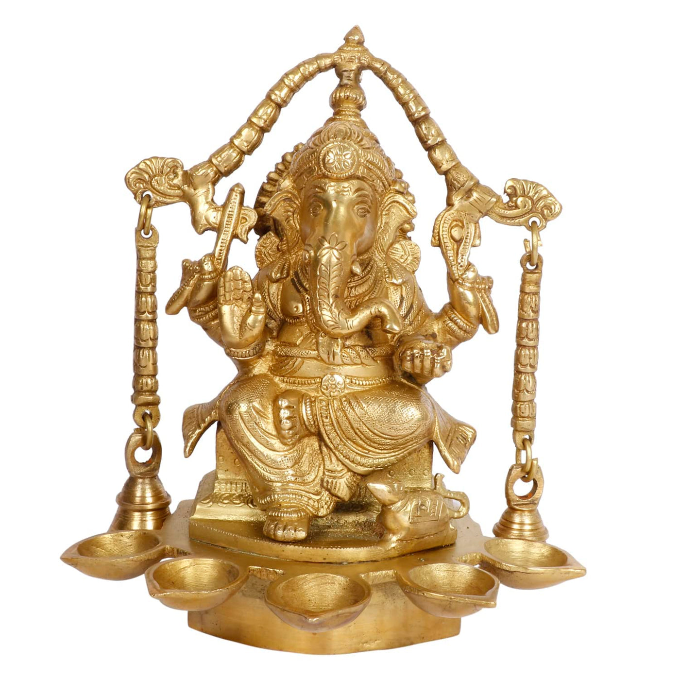 Kartique Brass Ganesh Bhagwan Idol Ganesha Statue Ganpati Murti With Multi Diya And Bells For Home Entrance Decor Diwali Gift Ga