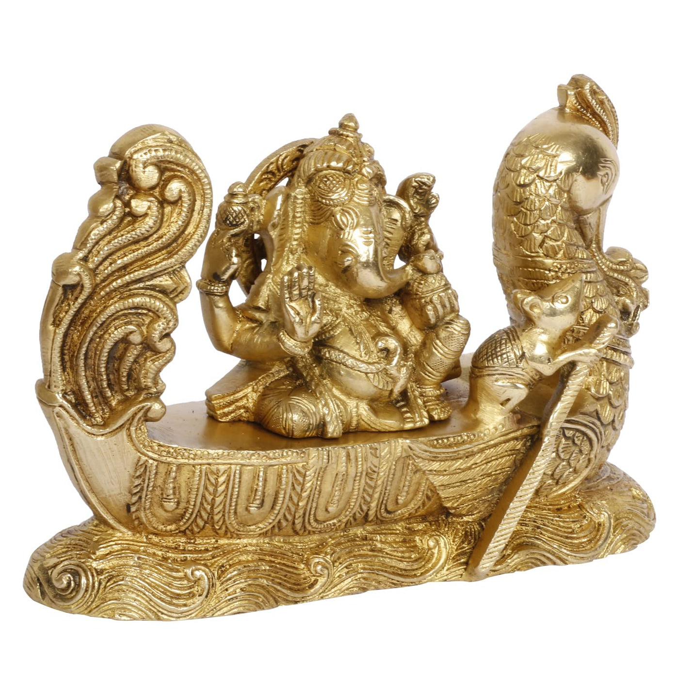 Kartique Brass Ganesh Bhagwan Idol Sailing On Boat Ganesha Statue Ganpati Murti For Home Entrance Decor Diwali Gift Ganesha With