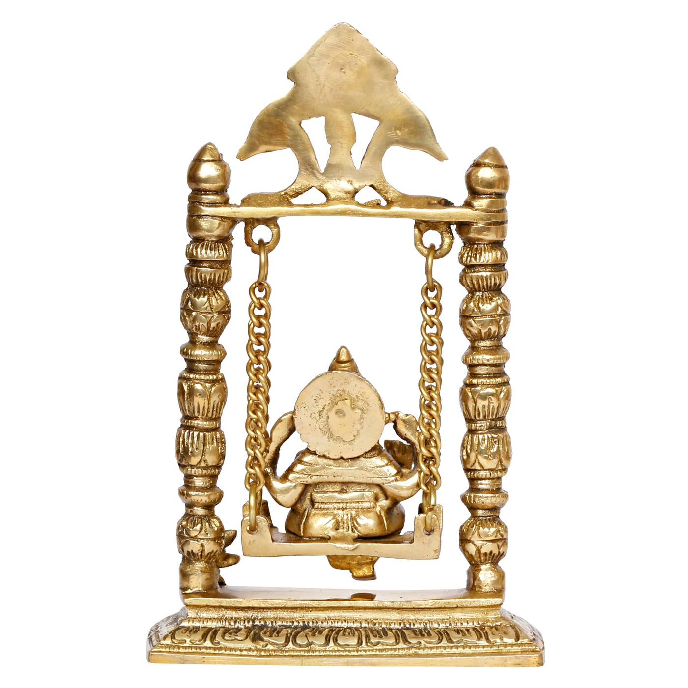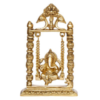 This Is A Beautiful, Unique & Gorgeous Hand Work On Solid Metal Figure Of Ganesha On Jhula Swing. Bless Your Place And Heighten The Beauty And Spirituality Of Your House Or Work Place With This Handmade God Ganesha Sculpture.Ganesha Is The Remover Of Obstacles, The Deity Whom Worshipers First Acknowledge When They Visit A Temple. He Is Worshipped For Success (Siddhi) In Undertakings And Intelligence (Buddhi). He Is Worshipped Before Any Venture Is Started. He Is Also The God Of Education, Knowledge And Wisdom, Literature, And Fine Arts. Ganesha Is The Legendary Scribe Who, Using His Broken Tusk, Which He Often Holds, Wrote Down Parts Of The Mahabharata Epic.This Handmade God Ganesha Sculpture Is Fully Artisan Crafted In India, Making It A Truly Authentic Figurine. This Handmade God Ganesha Sculpture Is Designed In Metal Using Sand Casting Technique And Has A Golden Color To It.Place This Calm Art Piece In Your Living Room For An Effervescence Beauty Or Gift It To Your Loved Ones Before He/She Enters A New Phase In Life. It Represents The Power Of The Supreme Being Who Removes Obstacles And Ensures Success In Human Endeavors.Complete The Decor Of Your Home In The Utmost Of Style Or Add Some Indian Flair To Your Living Room Decor.