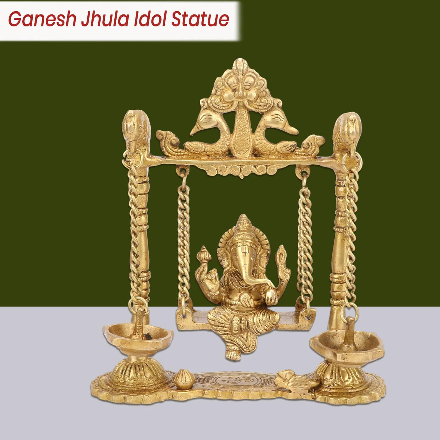 Kartique Brass Ganesh Jhula Idol | Ganesha On Swing Murti For Home, Mandir, Office Decor | Ganpati Bappa Statue For Housewarming