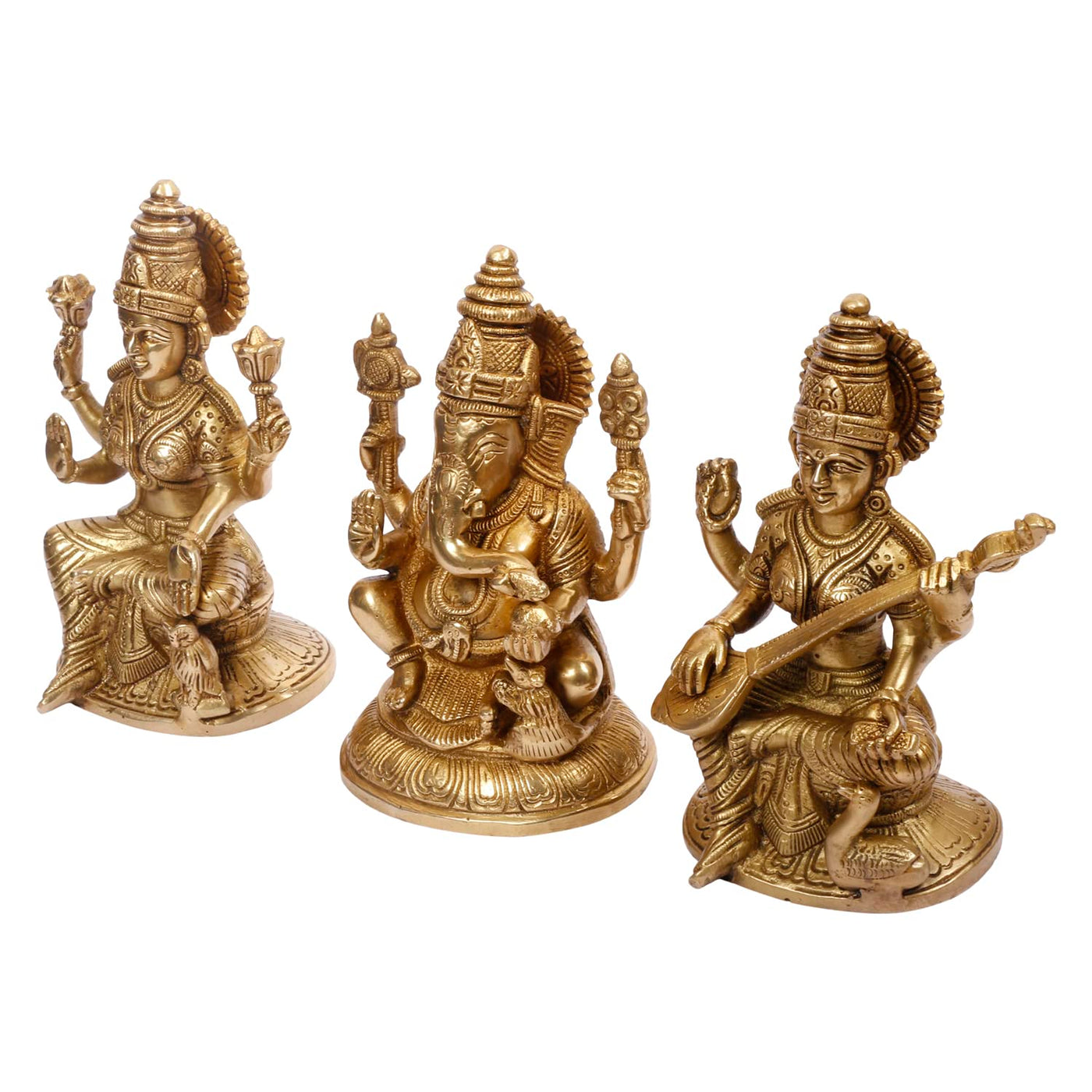 Kartique Brass Laxmi Ganesh Saraswati Bhagwan Idol Ganpati Murti Metal Statue For Home Office Success Entrance Decor Pooja Good