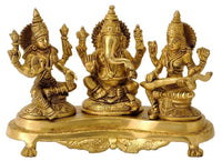 Kartique Brass Laxmi Ganesh Saraswati Idol | Ganesha Statue | Ganpati Murti | For Home Decor | Gift | (Gold)