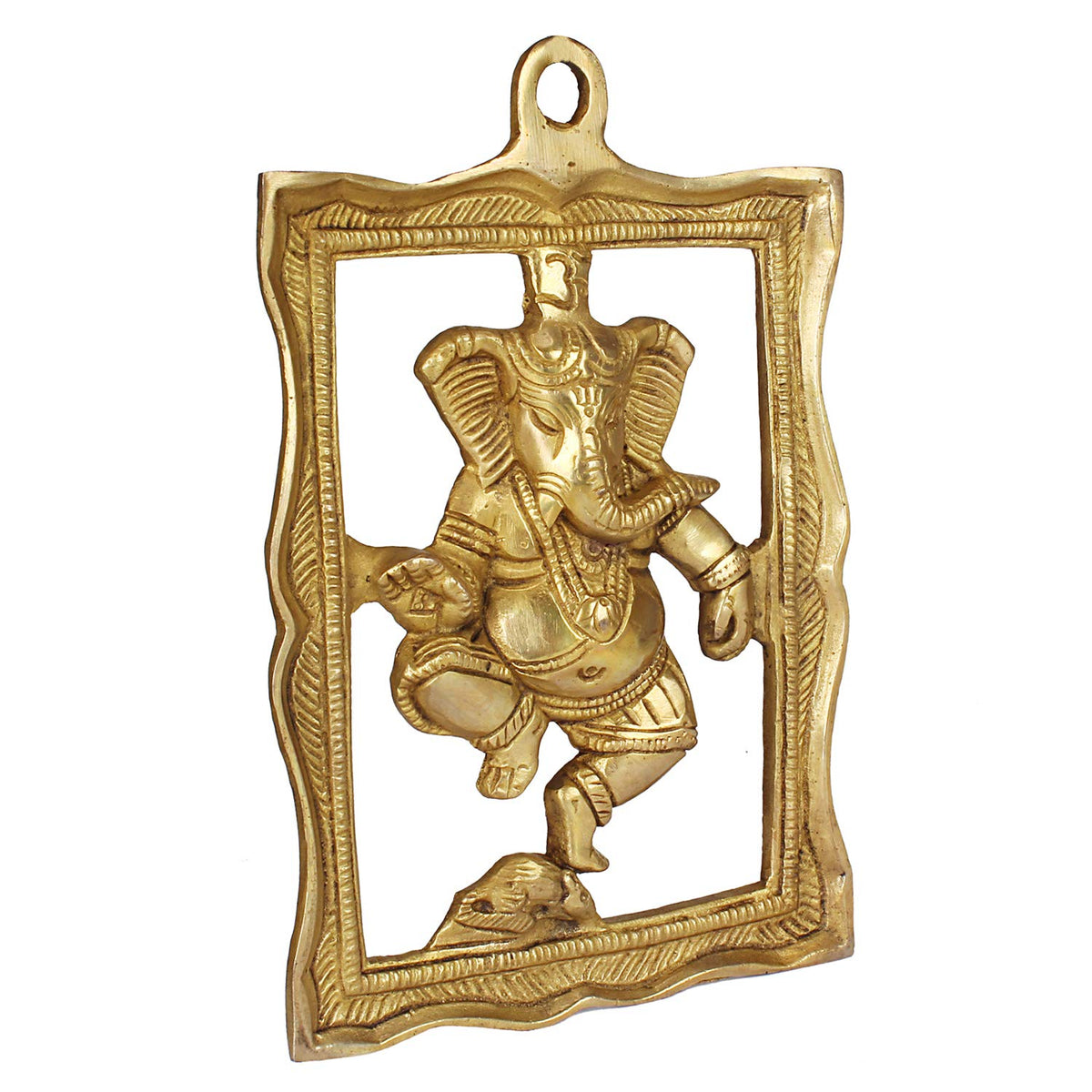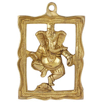 Kartique Ganesha Brass Wall Hanging Idol - Dancing Posture, 9 Inches Tall, Decorative And Auspicious Statue