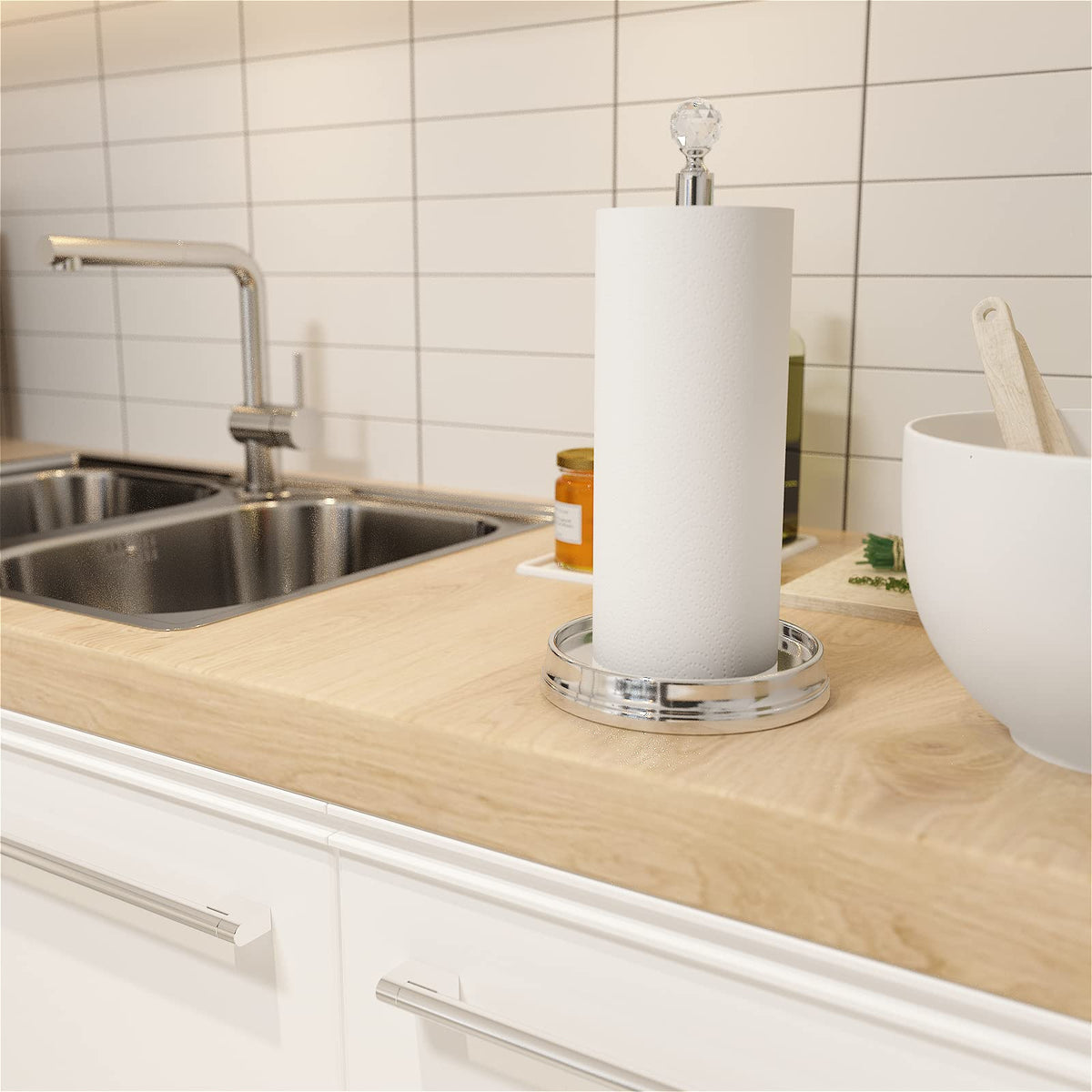- Q: What features make this paper towel holder stand out? A: The KASUNTO Paper Towel Holder features an elegant crystal ball design, a heavy base for stability, and a simple yet stylish appearance that complements modern and contemporary decor.