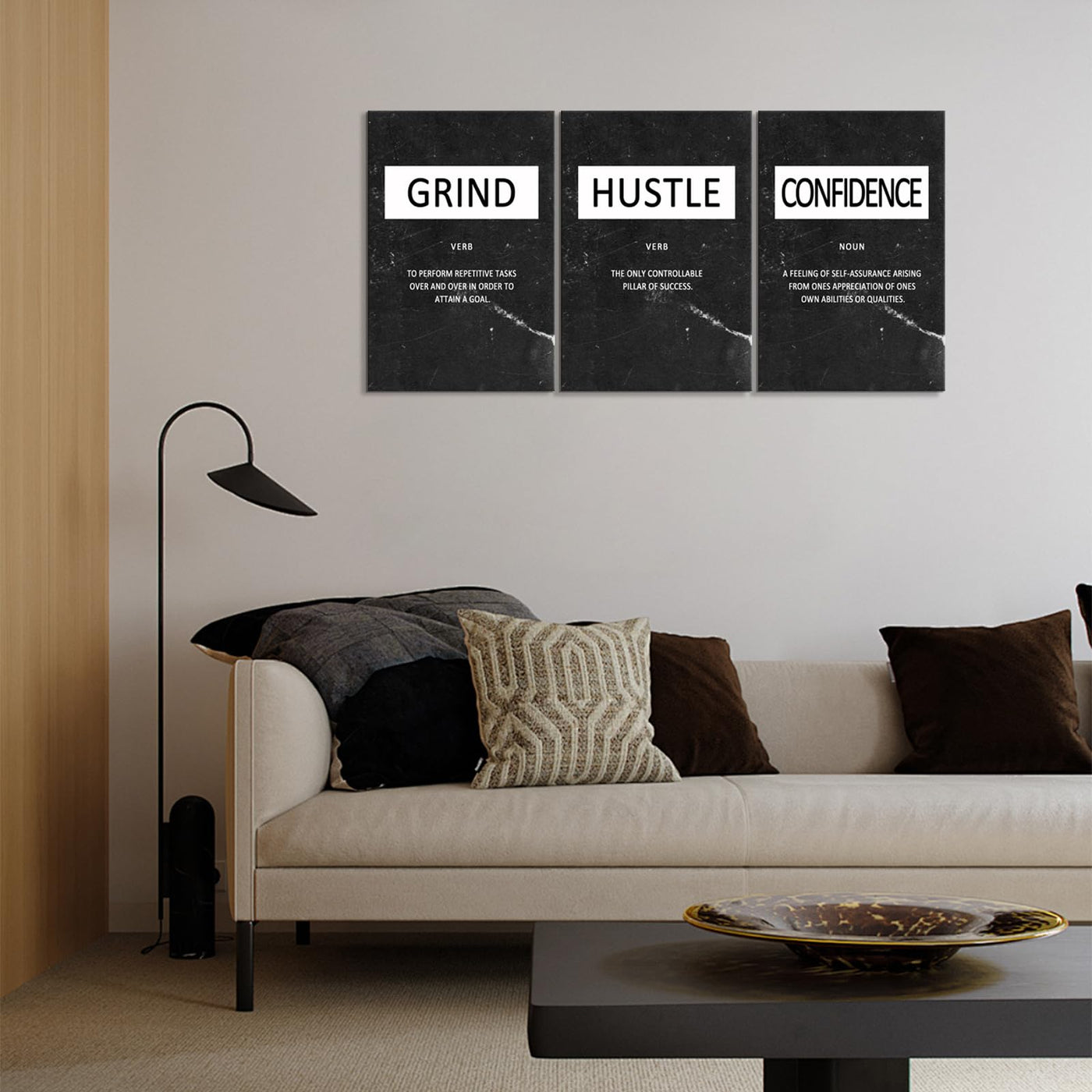 Kawahone Inspirational Canvas Wall Art - Grind Hustle Confidence Motivational Wall Art, Positive Quotes Wall Poster For Living R