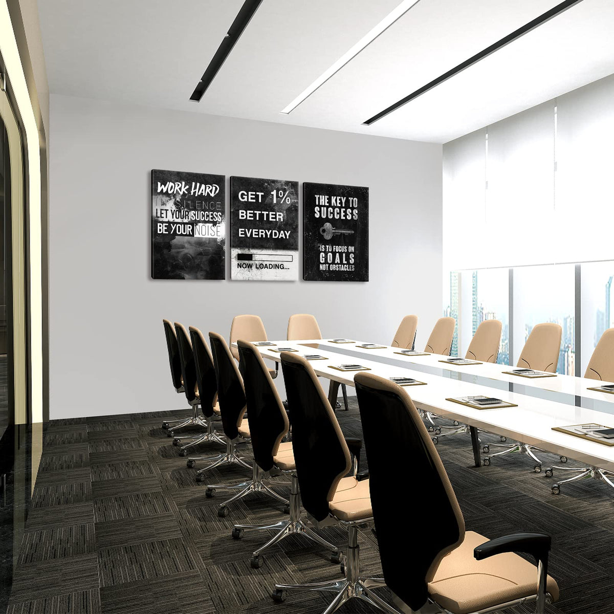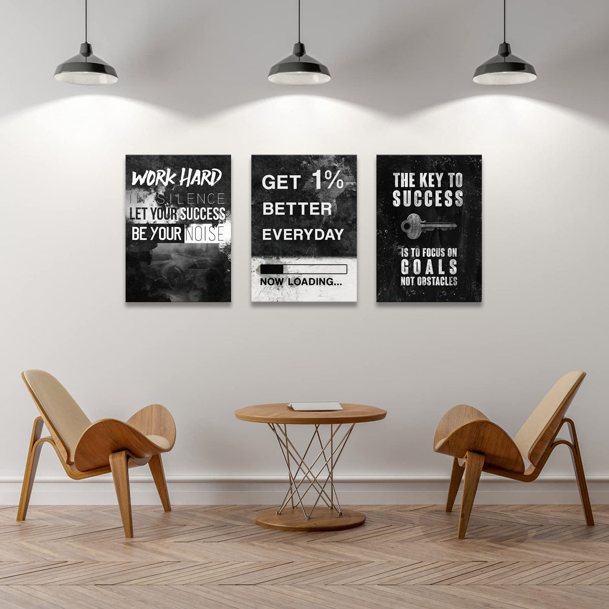 KAWAHONE Success Canvas Wall Art for Home Office Workplace Perseverance Leader Canvas Quotes Motivate Success Positive Poster Framed Motivation Gift-12 Wx16 Hx3PCS