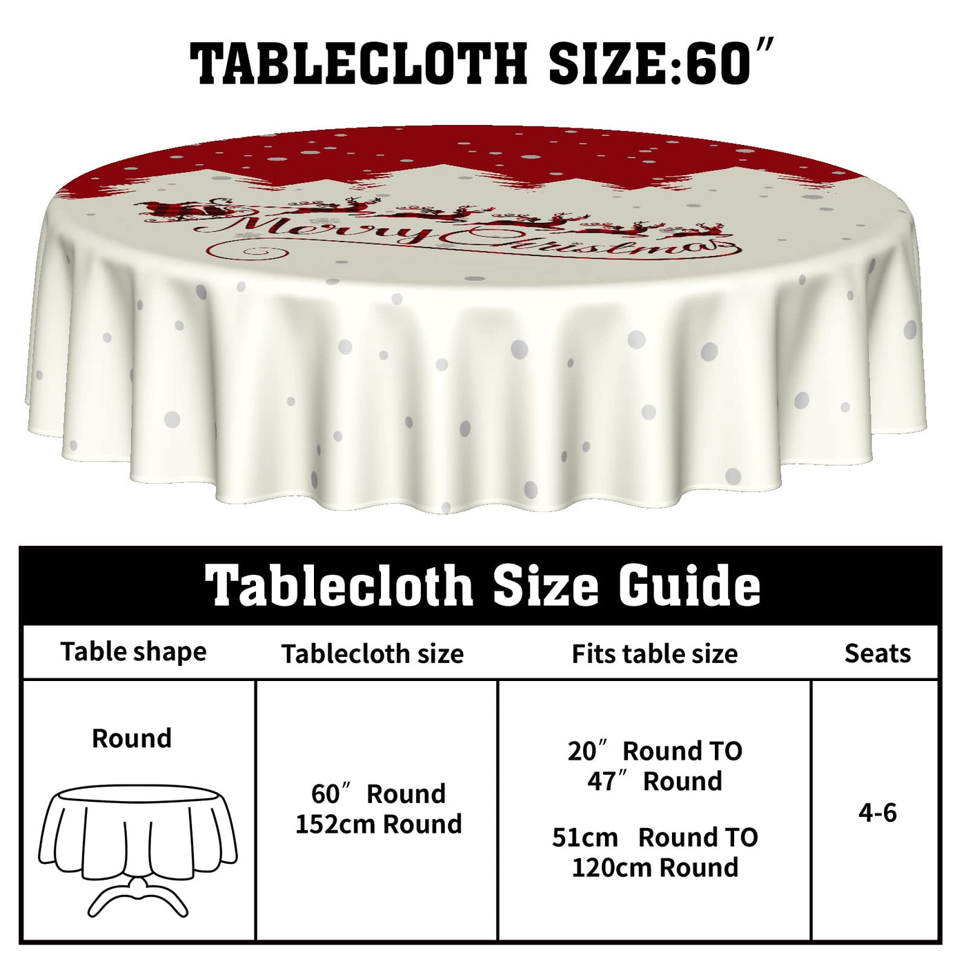 - Q: What size tables does the Kawani Merry Christmas Round Tablecloth fit? A: The Kawani Merry Christmas Round Tablecloth is designed to fit tables that seat 4 to 6 people, with a size of 60 inches.