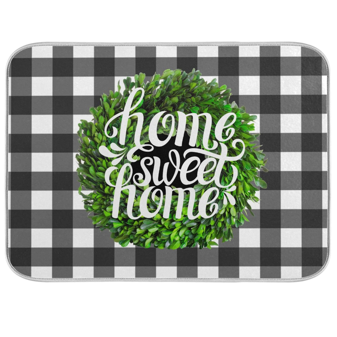 Kcldeci Boxwood Wreath Dish Drying Mat For Kitchen 18X24 Inch Buffalo Plaid Check Dish Drying Pad Dish Rack Drainer Pad Dish Mat