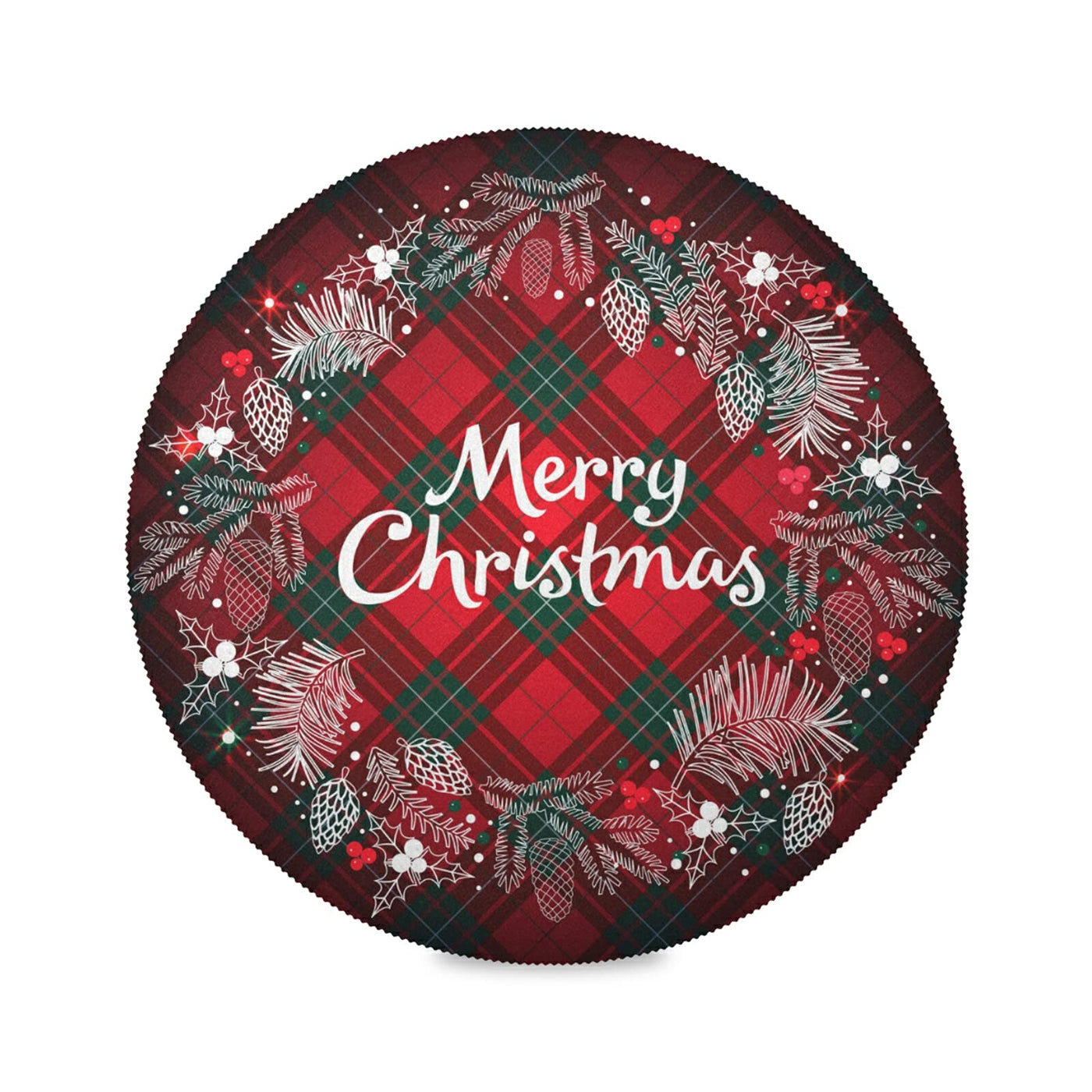Kcldeci Merry Christmas Round Placemats Set Of 4 For Dining Table, Xmas Place Mats Buffalo Check Plaid Wreath Heat Resistant Kit