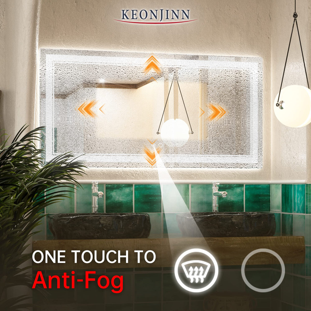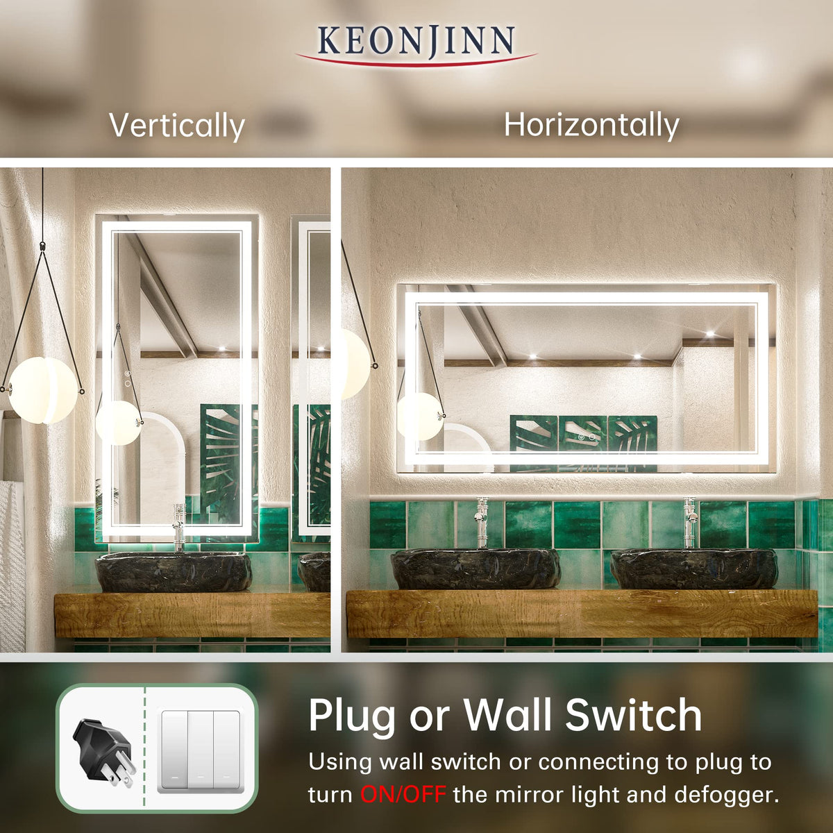 - Q: What are the dimensions of the Keonjinn LED bathroom mirror? A: The Keonjinn LED bathroom mirror measures 48 inches in length, 24 inches in width, and 1 inch in height.