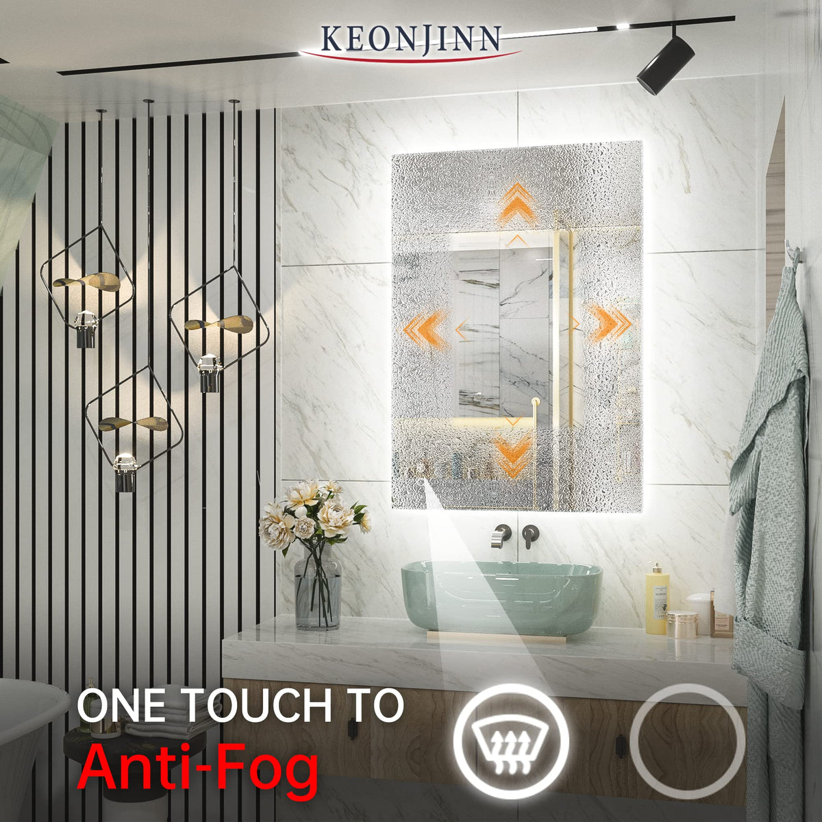 - Q: How heavy is the Keonjinn Backlit Mirror? A: The product weight of the Keonjinn Backlit Mirror is approximately 31.53 pounds.