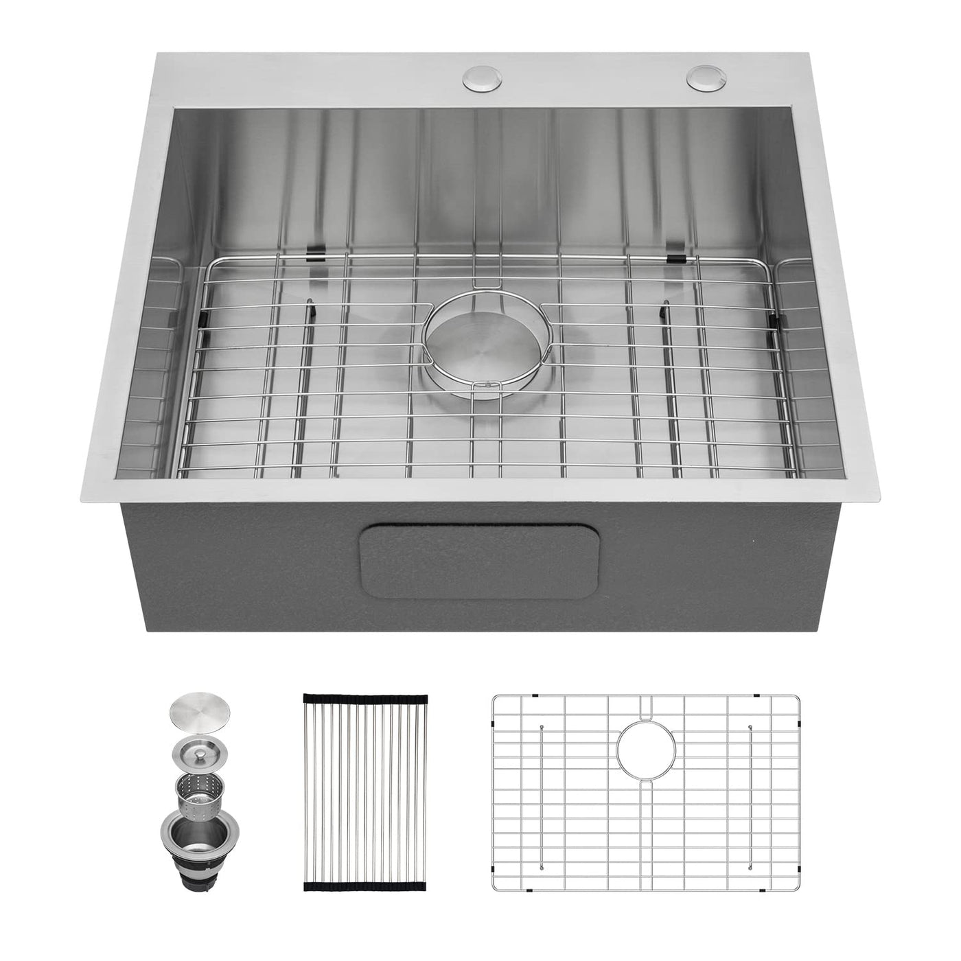 Kichae 28 Drop In Kitchen Sink - 28X22 Inch Kitchen Sink Drop In 18 Gauge Stainless Steel Single Bowl Handmade Topmount Kitchen
