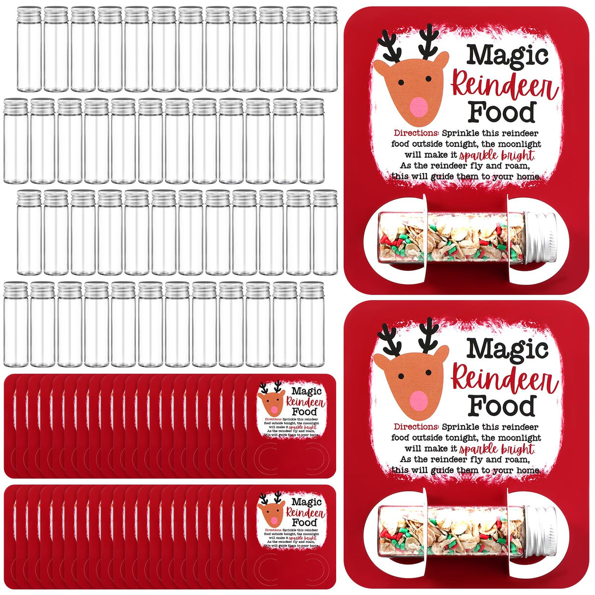Kigeli Christmas Reindeer Food Glass Jar Filled Glitter Attached Paper Card Holiday Reindeer Food Kit Christmas Eve Present Gift