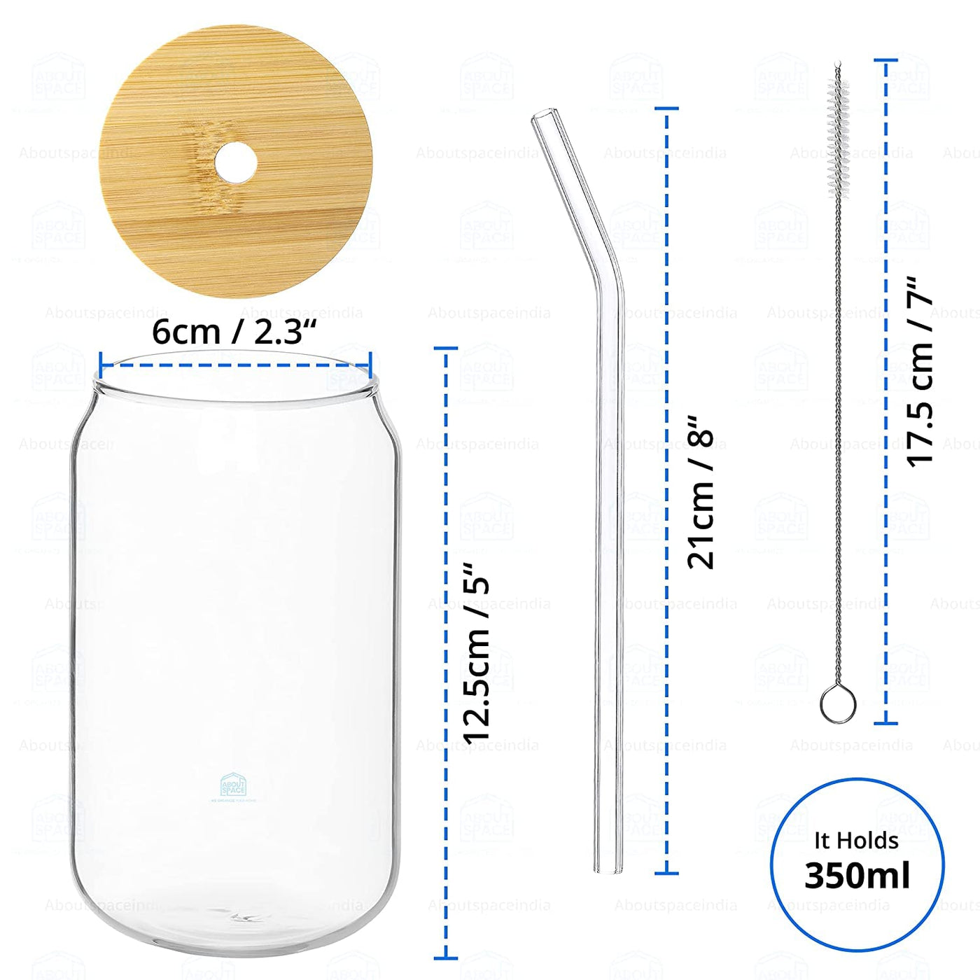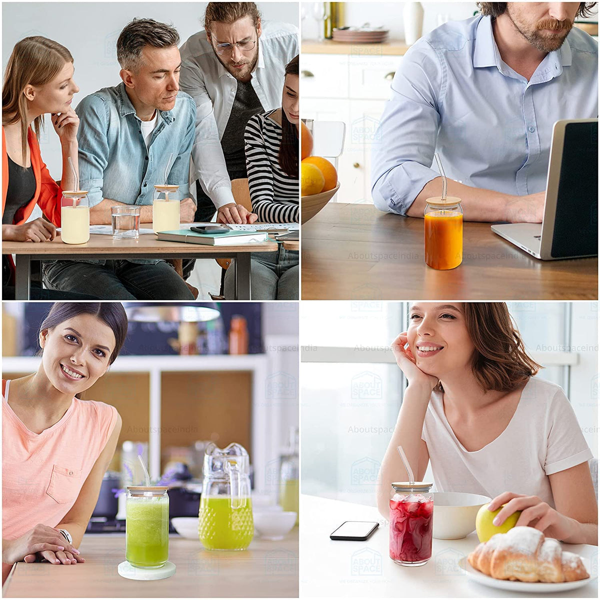 KiKiluxxa Round Glass Tumbler Can with Straw and Lid - 540ml - Pack of 4 - Glass Sipper with Straw for Fruit Juice Milk Mug