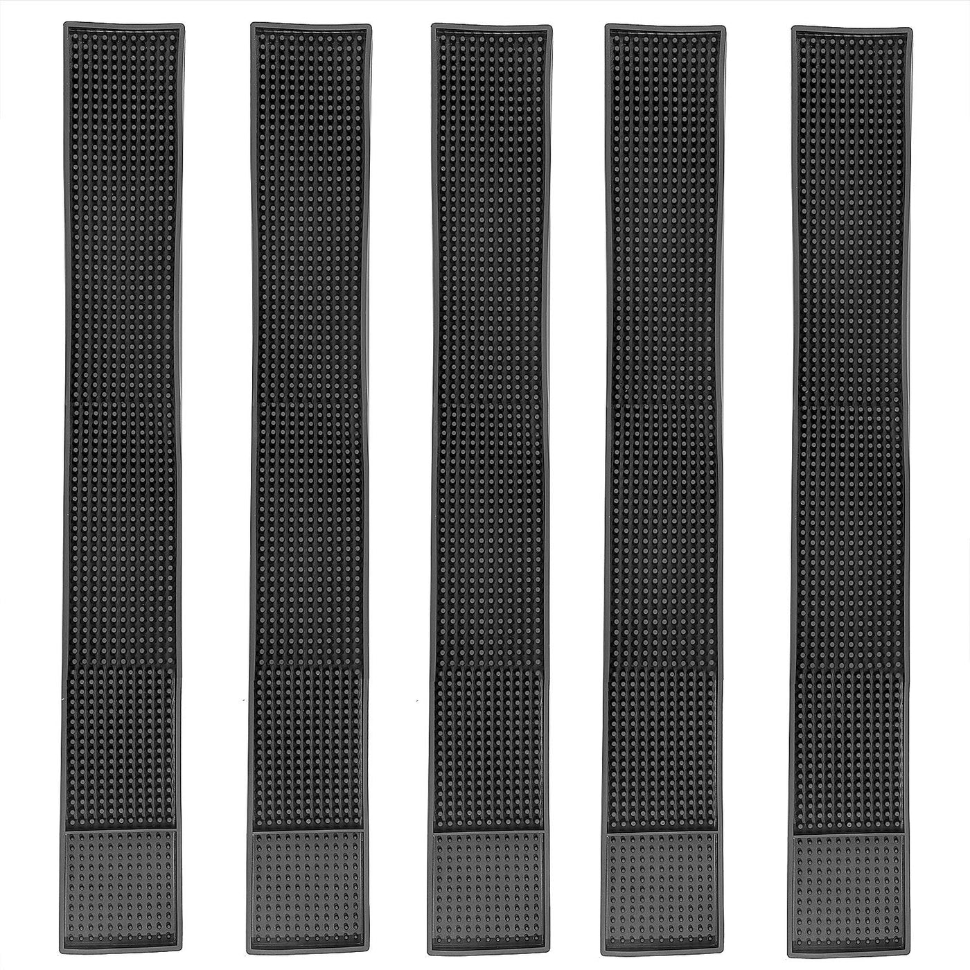 Kinjoek 5 Packs 3.2 X 24 Inch Rubber Bar Service Mat, Black Long Drink Coasters, Leakproof Non Slip Tabletop Protection Home Bar