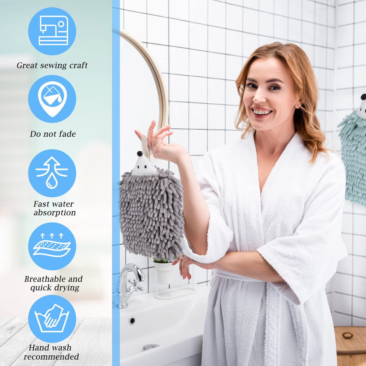 Kinlop 4 Pcs Chenille Hand Towels With Loop Cute Hedgehog Microfiber Hand Towels Absorbent Small Hanging Chenille Hand Towel For