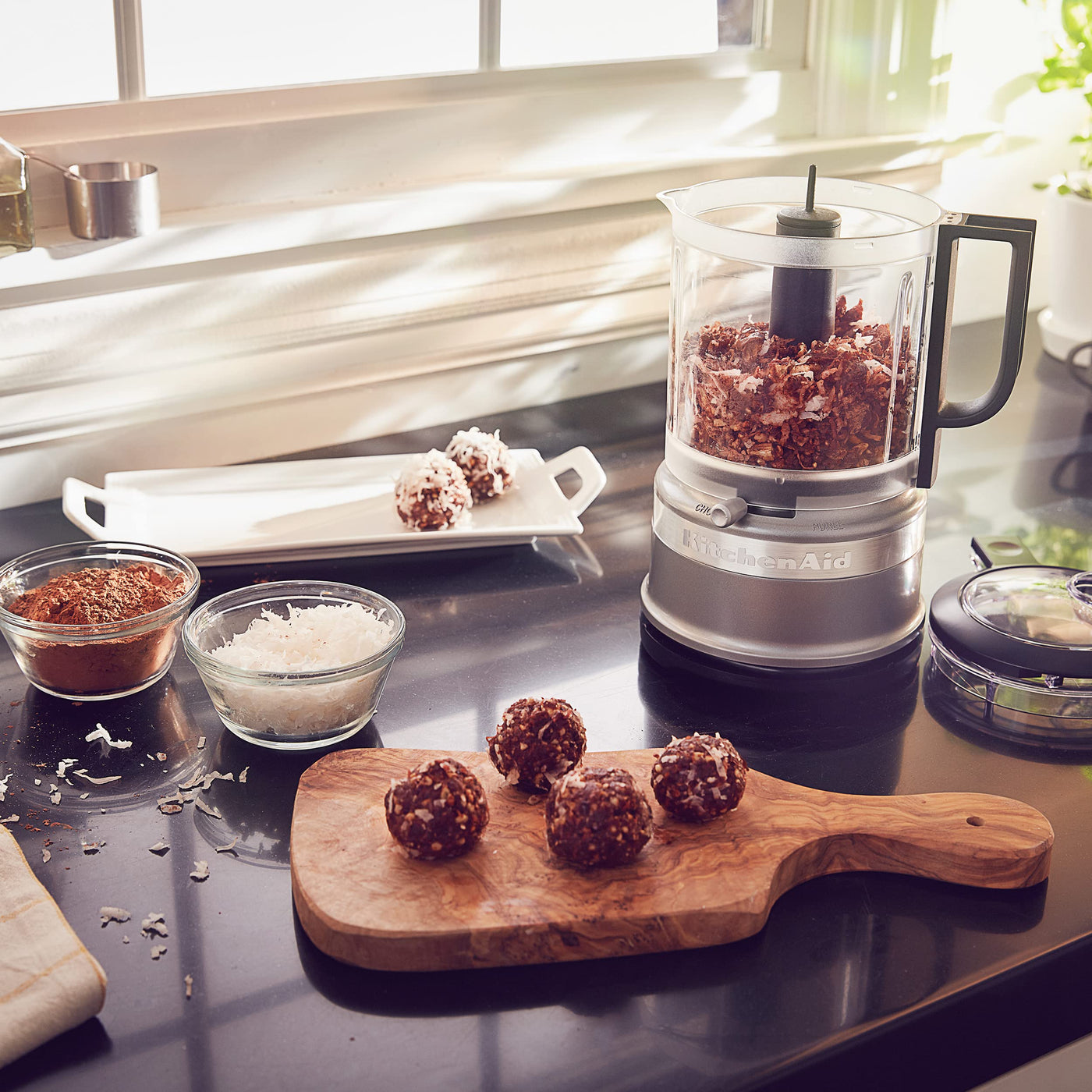 • Q: Is the KitchenAid food chopper easy to store? A: Yes, it has a small, countertop-friendly footprint and a simple cord wrap for easy storage.