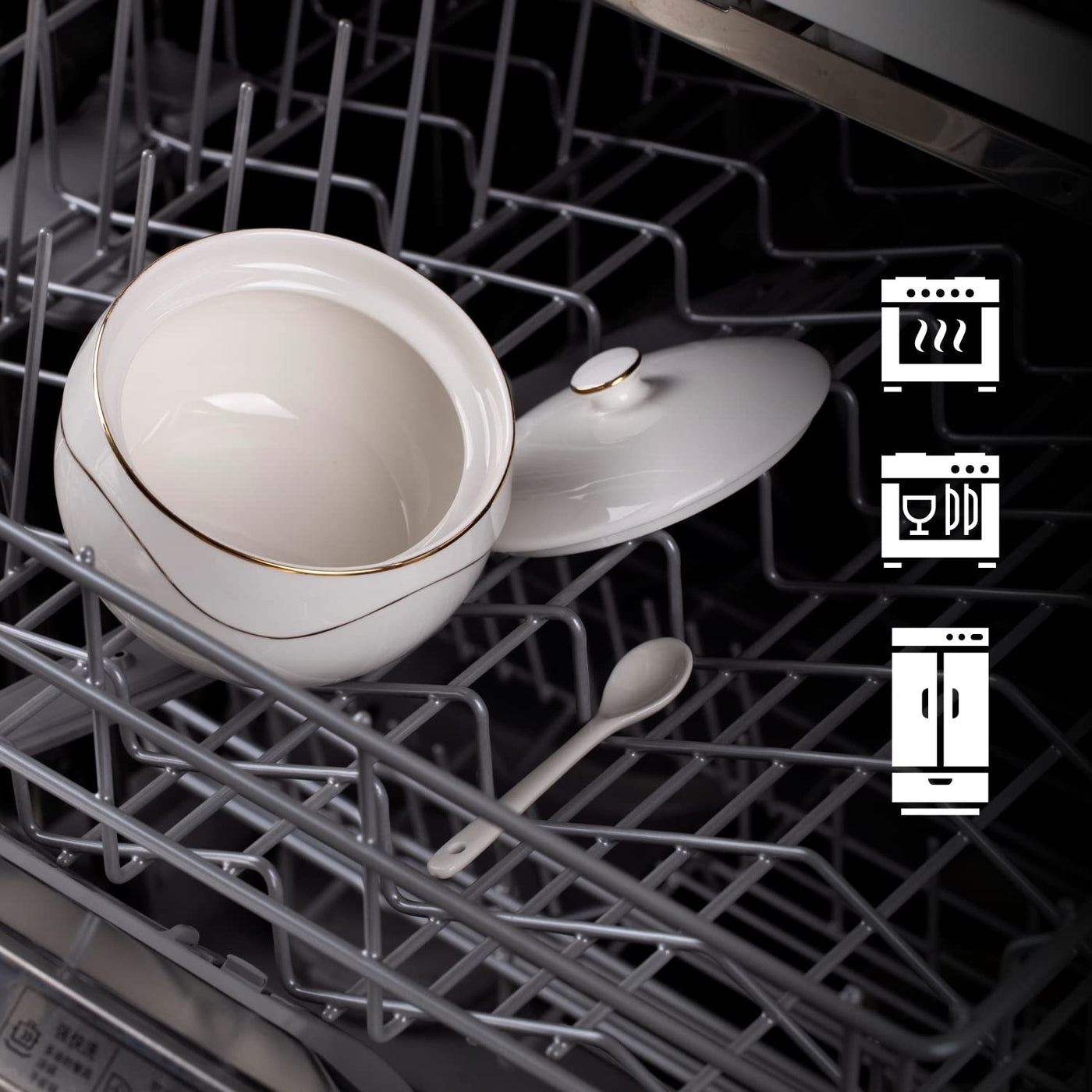 Kitchendao Porcelain Sugar Bowl With Lid And Spoon - Dust Free- Ceramic Sugar Holder Container For Countertop Kitchen Coffee, Di