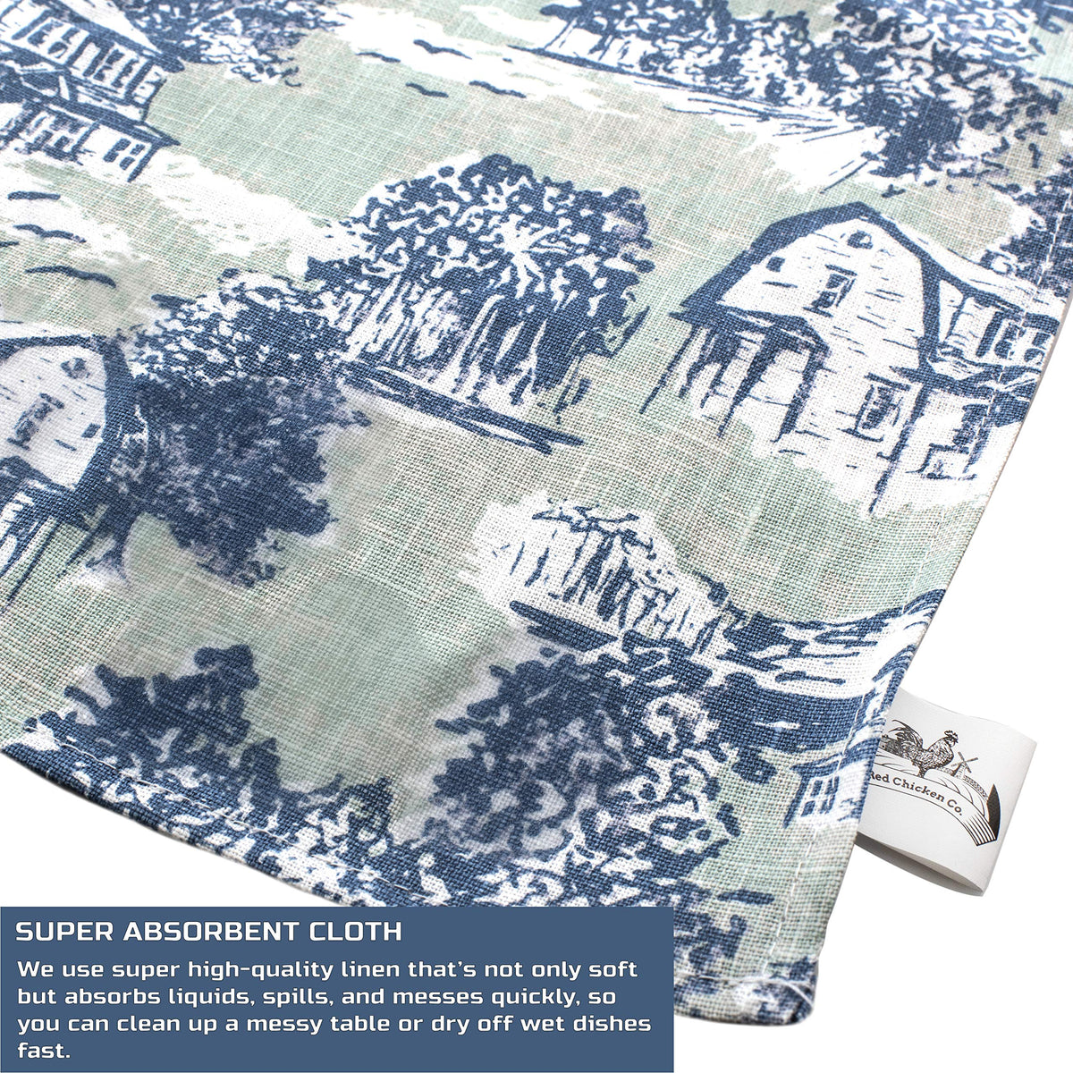 Kitchenvia Red Chicken Co. Linen Tea Towel Set - Rustic Farmhouse Pattern, Soft And Durable For Kitchen Cleaning And Dining