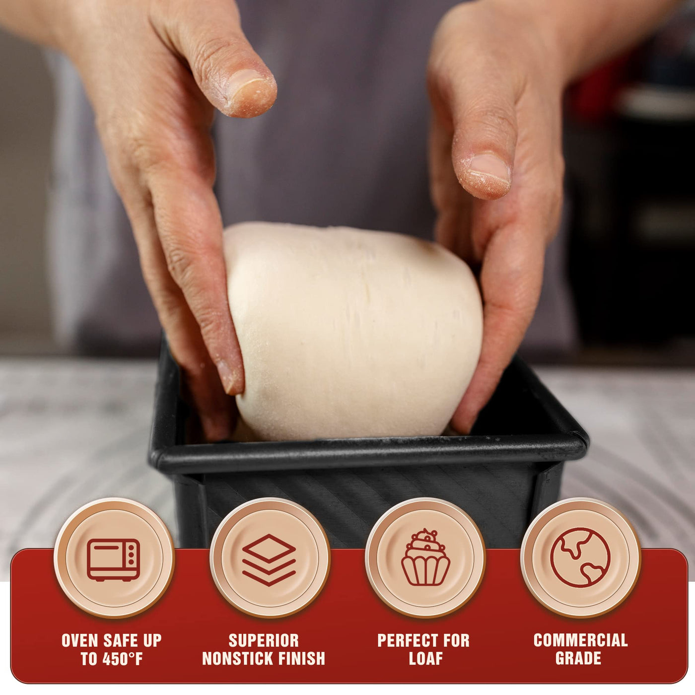 Kitessensu Carbon Steel Pullman Loaf Pan With Lid, 1 Lb Dough Capacity, Black, Non-Stick, Bread And Toast
