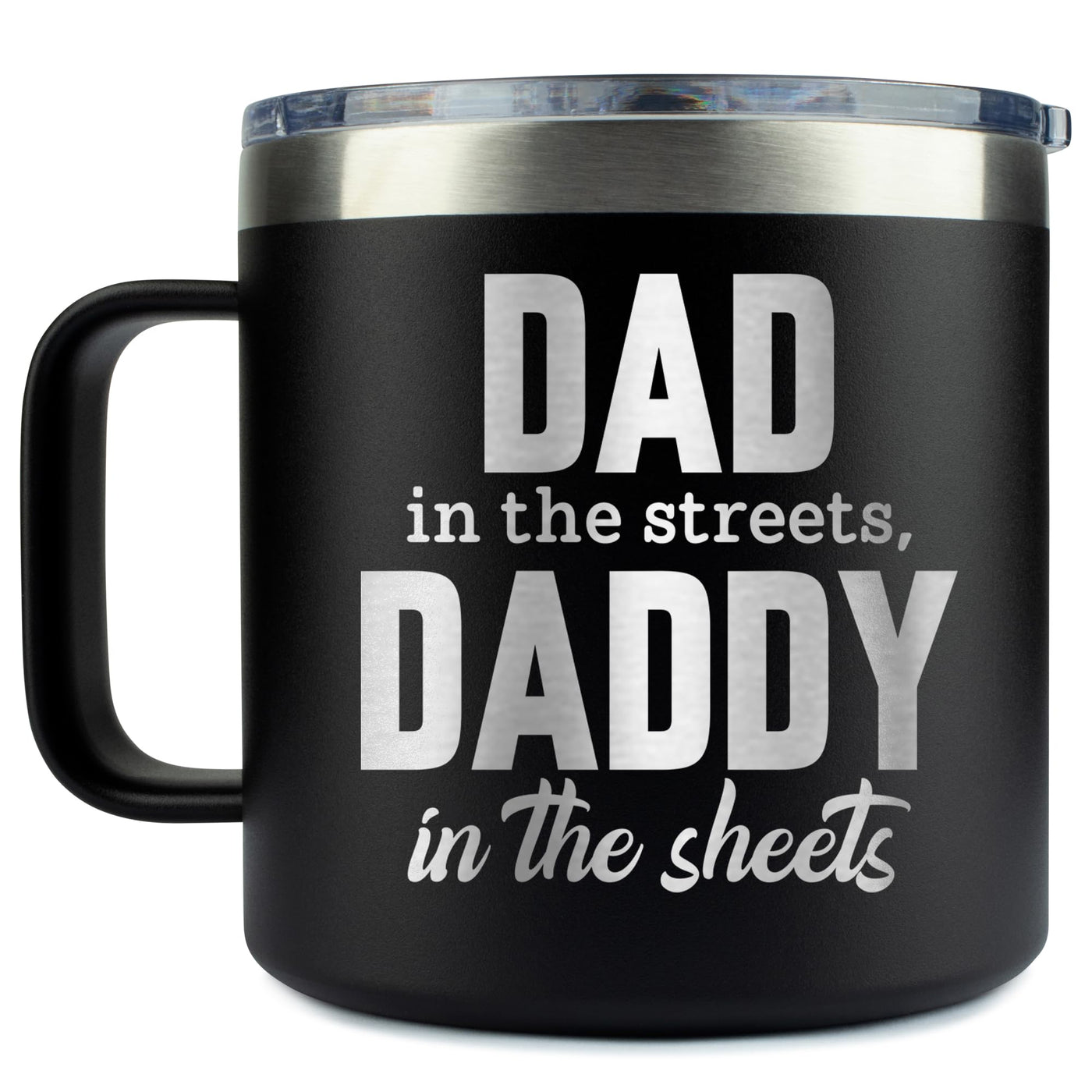 KLUBI Dad In The Streets Daddy In The Sheets Cup 14oz Birthday Gifts for Husband from Wife Dad Coffee Tumbler Daddy Gift Ideas D