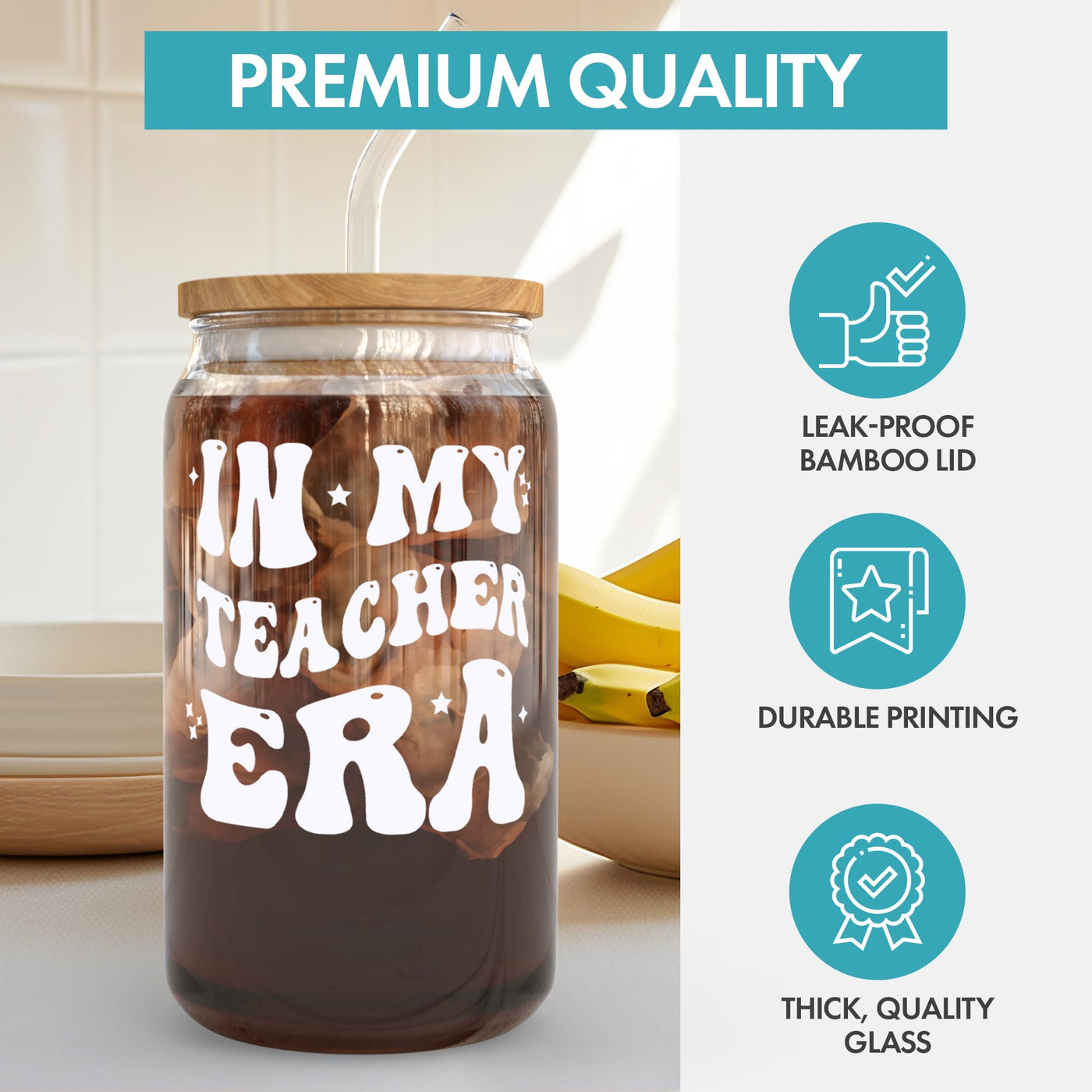 Klubi Teacher Gifts For Women In My Teacher Era Cup 16 Ounce Teacher Glass Cups With Lids And Straws, Personalized Teacher Gifts