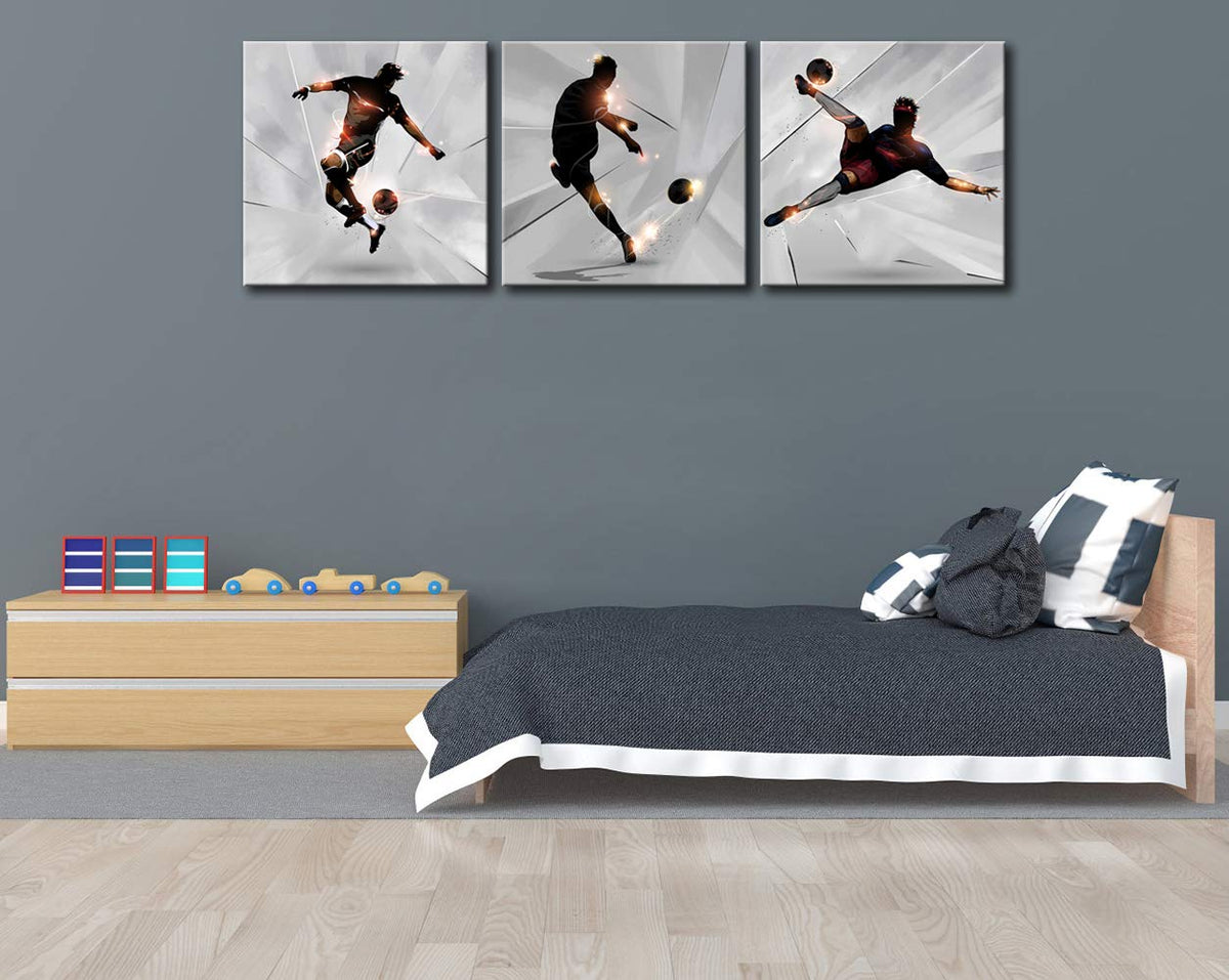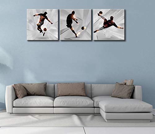 Klvos 3 Piece Soccer Wall Art For Teen Boys Abstract Sports Themed Picture Giclee Print On Canvas Kids Room Decor Football Art G