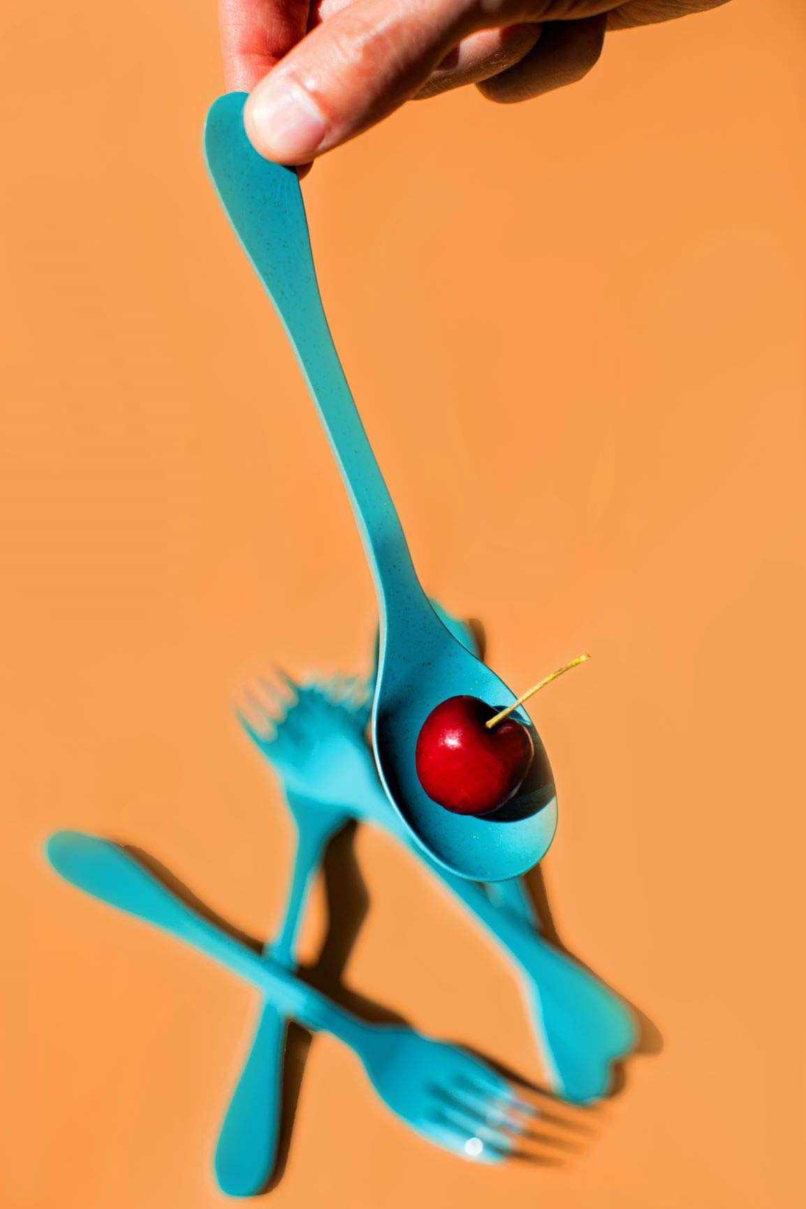 Knork Eco Fork Plant Based Cutlery, Reusable Bamboo Flatware Set, 12 Piece, Blue