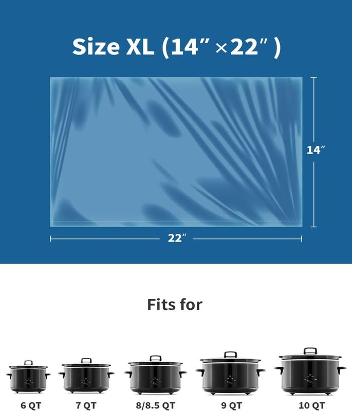 - Q: What size slow cookers do these liners fit? A: These KOOC Slow Cooker Liners are designed to fit a variety of slow cooker sizes. The Extra Large size is suitable for 6 to 10-quart slow cookers.
