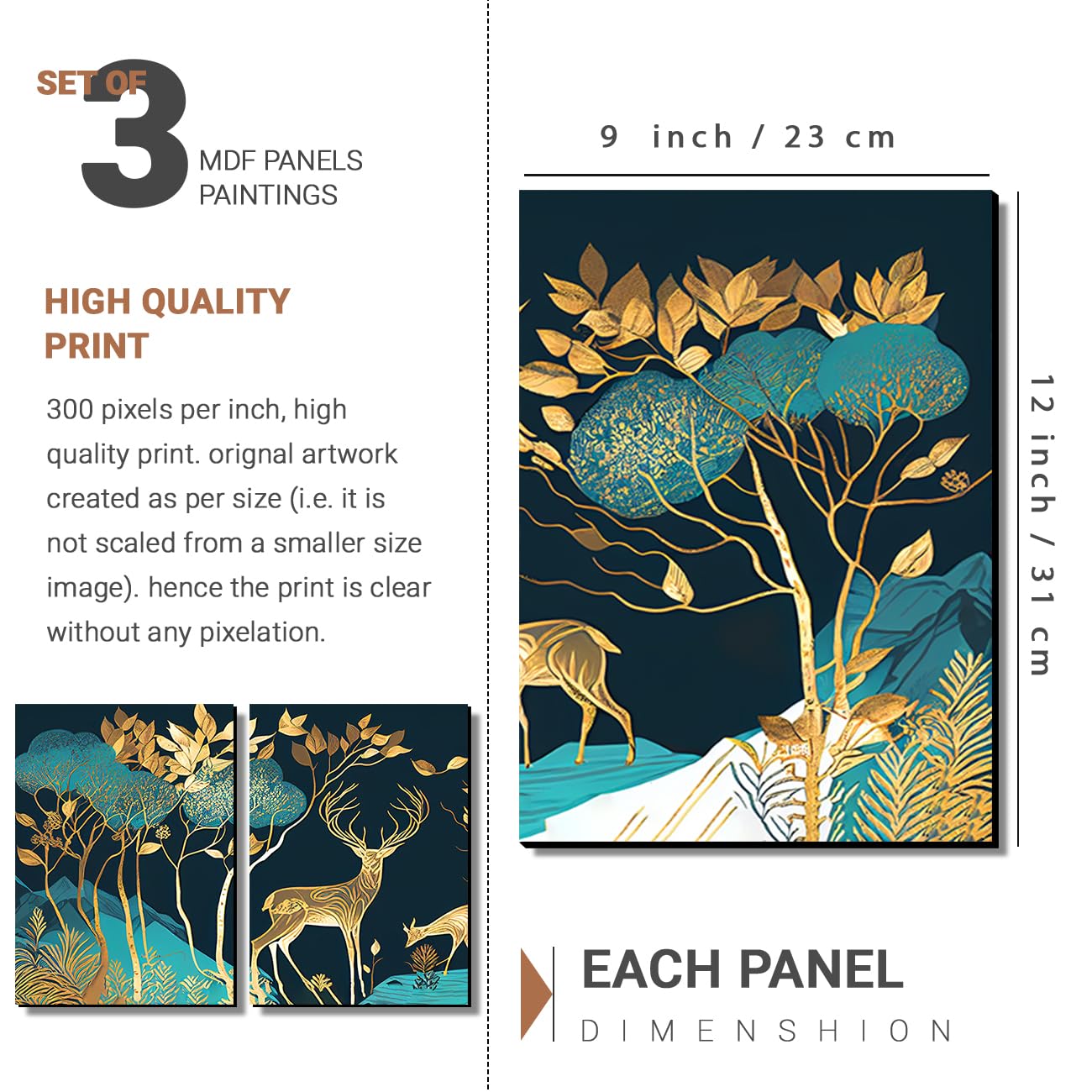 Kotart Green And Golden Deer Paintings Wall Art Mdf Panel Painting For Wall Decoration - Wall Paintings For Living Room, Bedroom