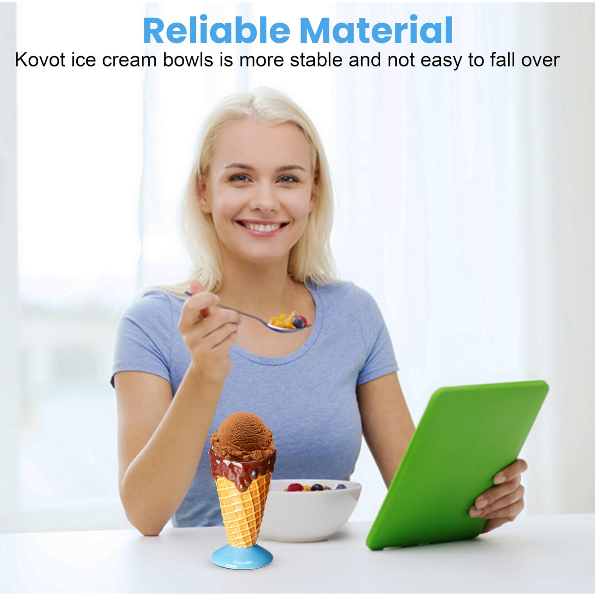 • Q: What is included in the Kovot Ceramic Dessert & Ice Cream Cone Set? A: The set includes four ceramic dessert cones and four metal spoons.