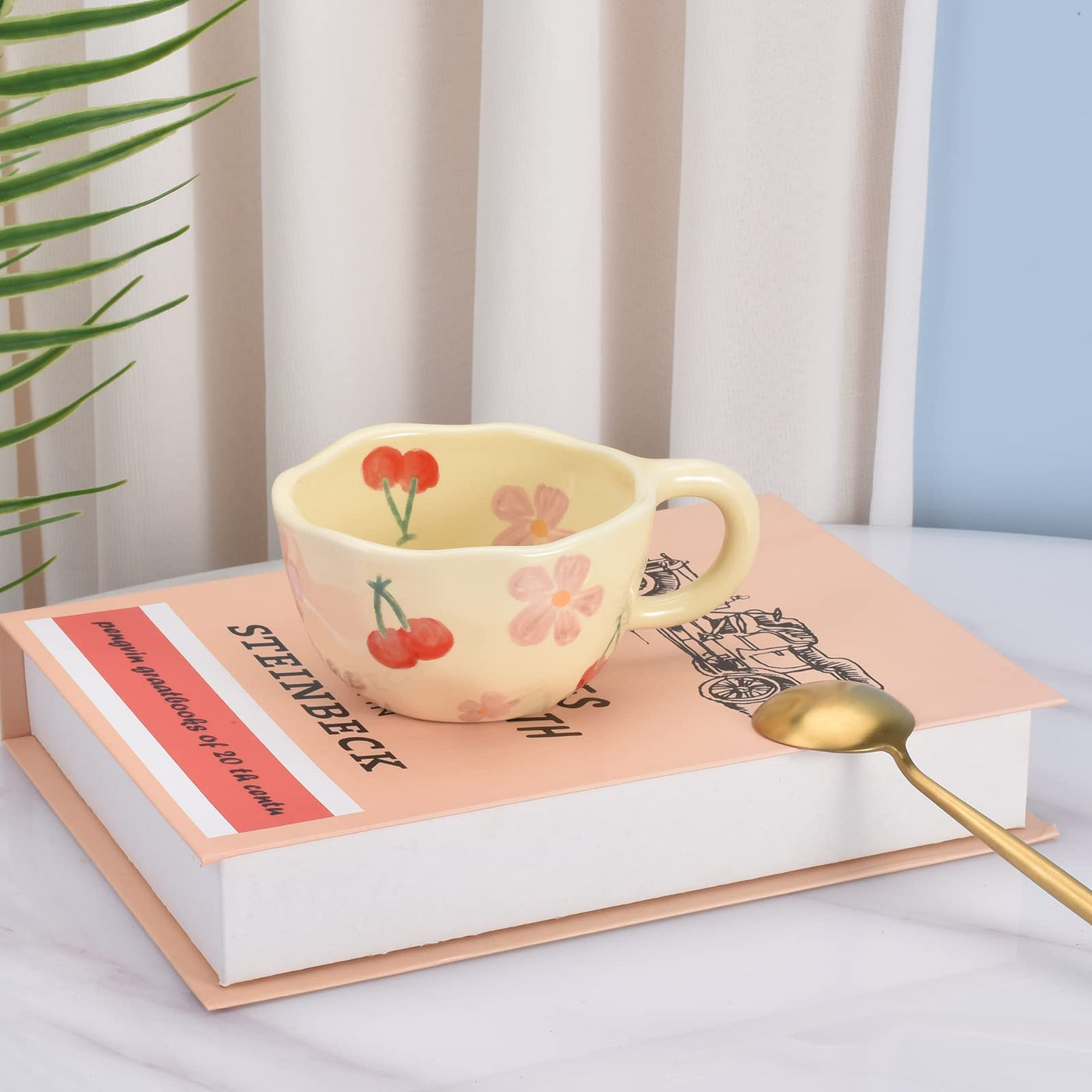 • Q: What colors are available for the Koythin Ceramic Coffee Mug? A: The Koythin Ceramic Coffee Mug is available in a Pink Cherry color, adding a vibrant touch to your drinkware.