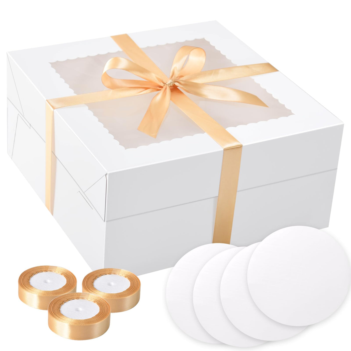 KPOSIYA 40pcs 12x12x6 inches Cake Boxes with Cake Boards(20 Boxes & 20 Boards), White 12 inch Cake Boxes with Window,Cajas Paste