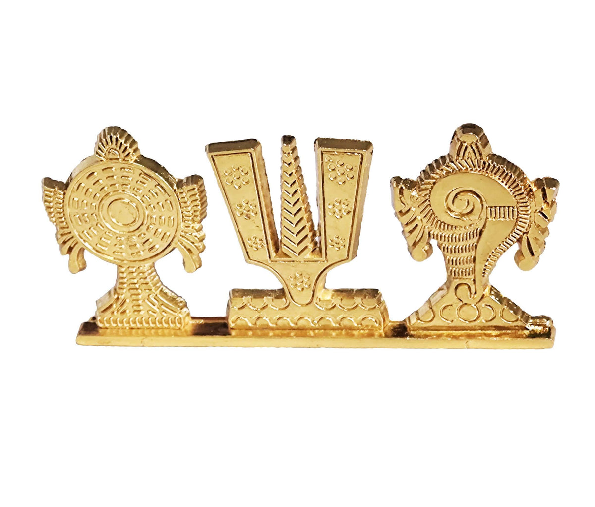 Kridaykraft Tirupati Balaji Symbol Stand Shankh Chakra Namah Gold Plating Antique Decorative For Car Dashboard Home & Office Tab