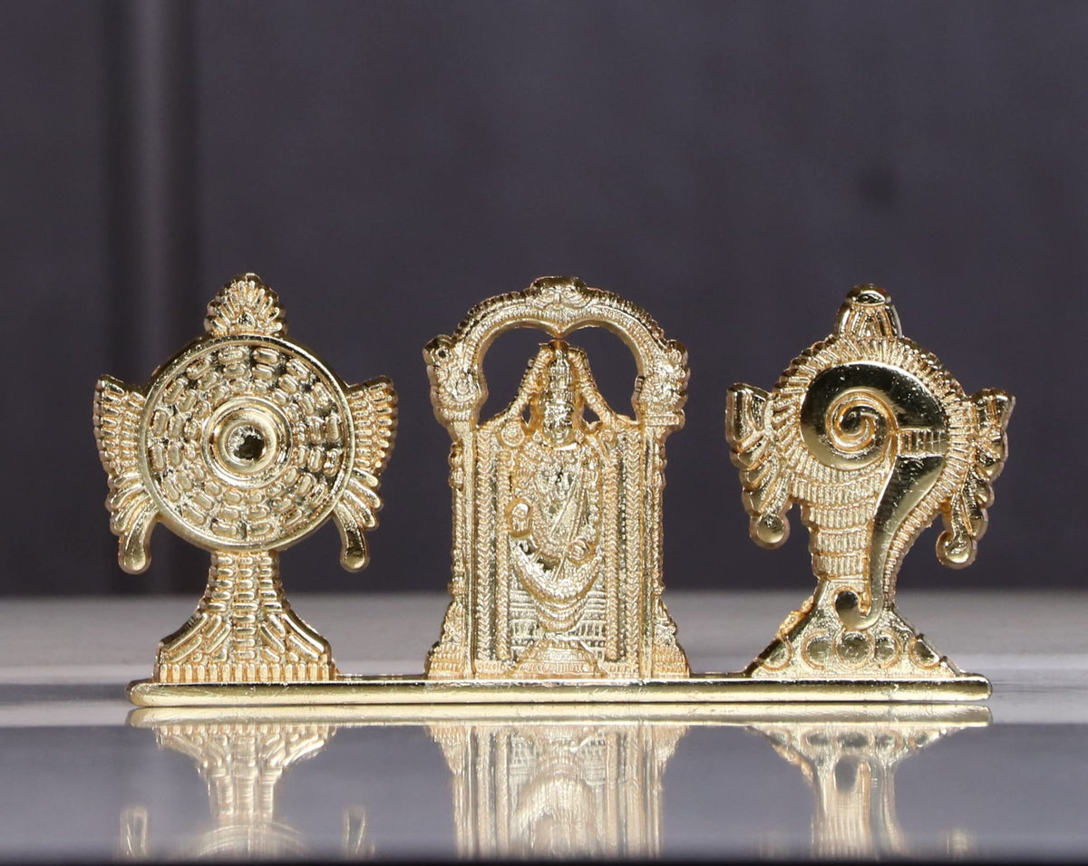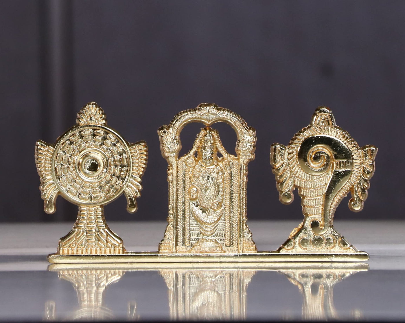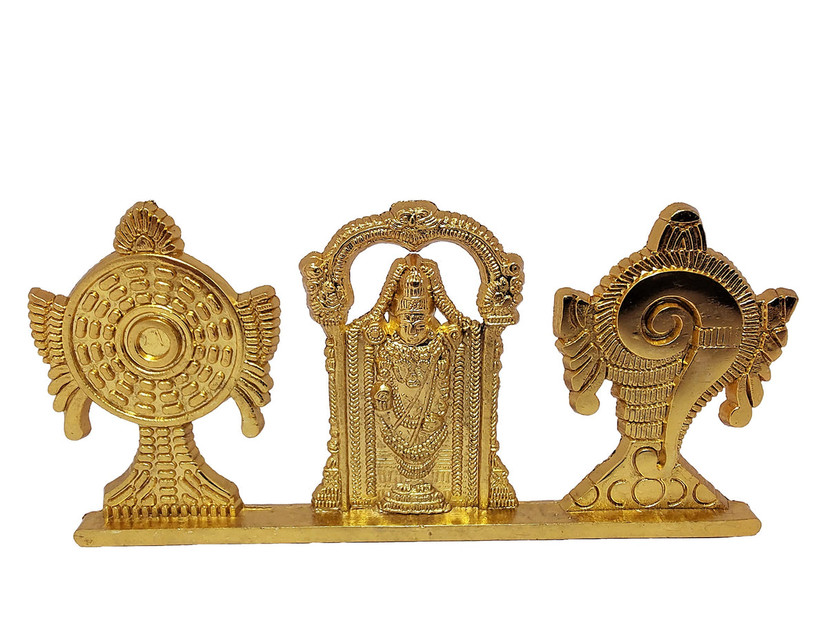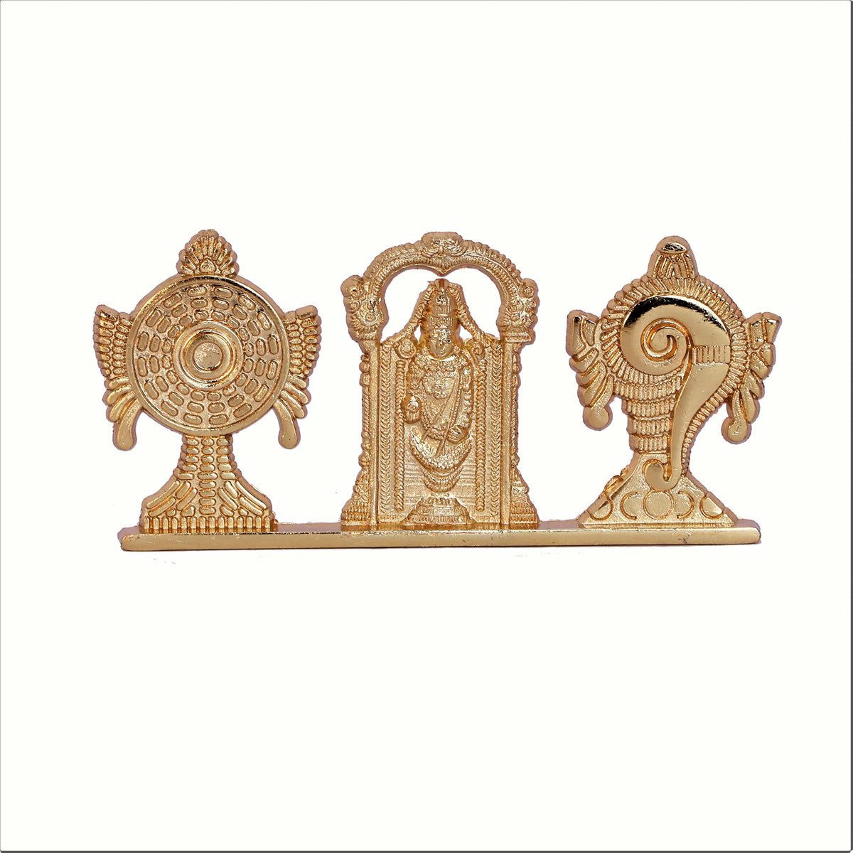Kridaykraft Tirupati Balaji Symbol Stand Shankh Chakra With Balaji Statue Gold Plating Antique Decorative For Car Dashboard Home