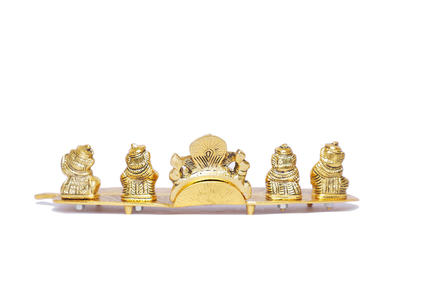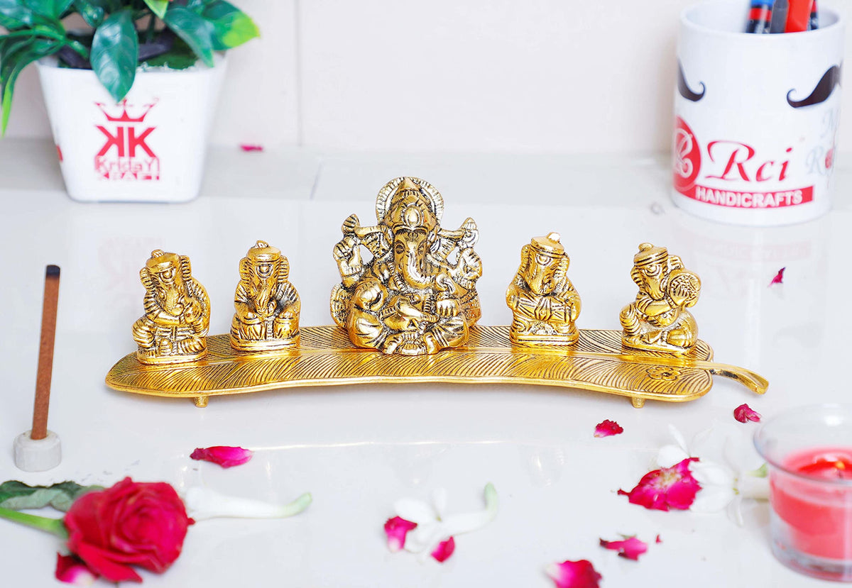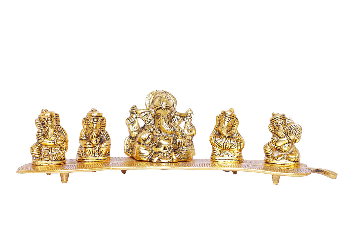 Kridaykraft White Metal Gold Plated Ganesha On Leaf With Musical Instrument Metal Statue For Pooja,Home & Office Dcor Ganesha Mu