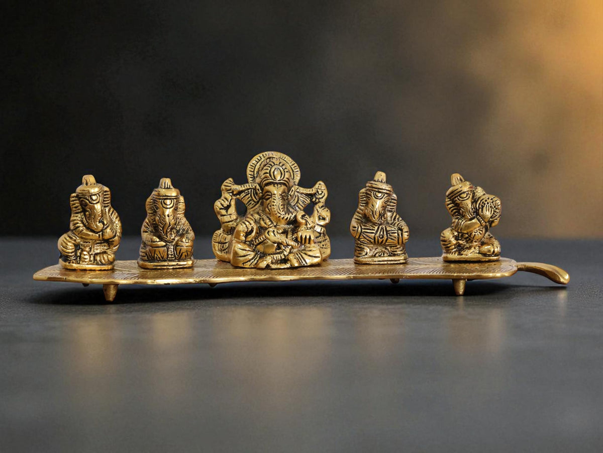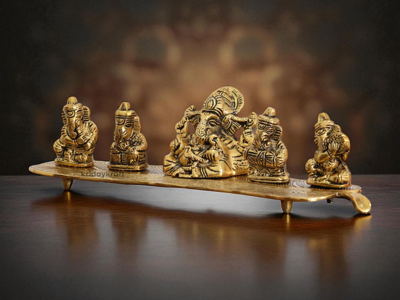 Kridaykraft White Metal Gold Plated Ganesha On Leaf With Musical Instrument Metal Statue For Pooja,Home & Office Dcor Ganesha Murti Idol,Showpiece Figurines,Religious Idol Decorative Gift Article...