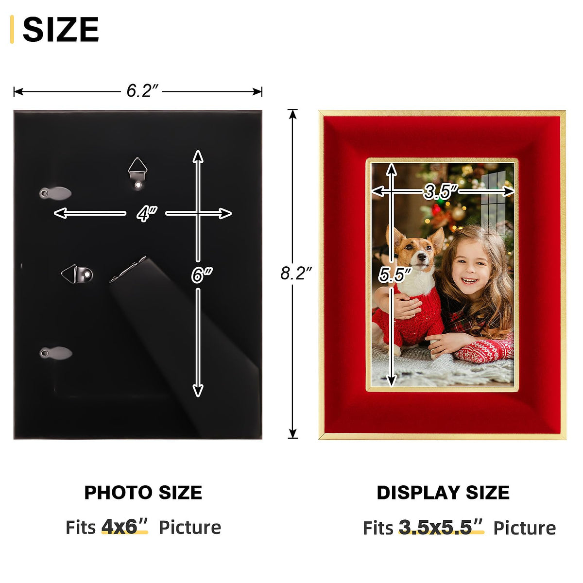 KSROECUD 4x6 Velvet Picture Frame, Red Photo Frames with Modern Simple Metallic Gold Border, HD Real Glass Horizontal & Vertical