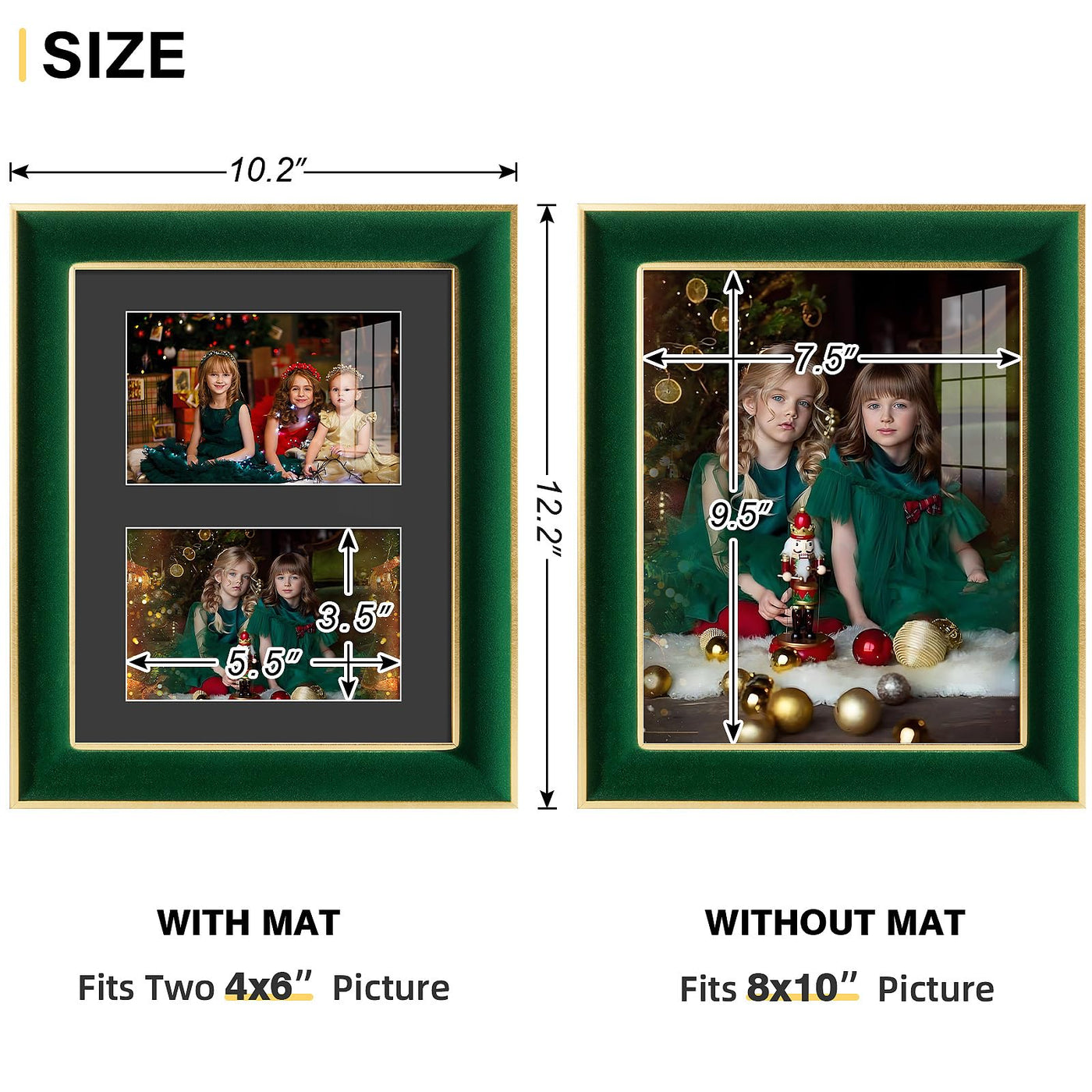 KSROECUD 8x10 Velvet Picture Frame with 2 Opening 4x6 Picture, HD Real Glass Green Velvet Photo Frame with Black White Border Ma