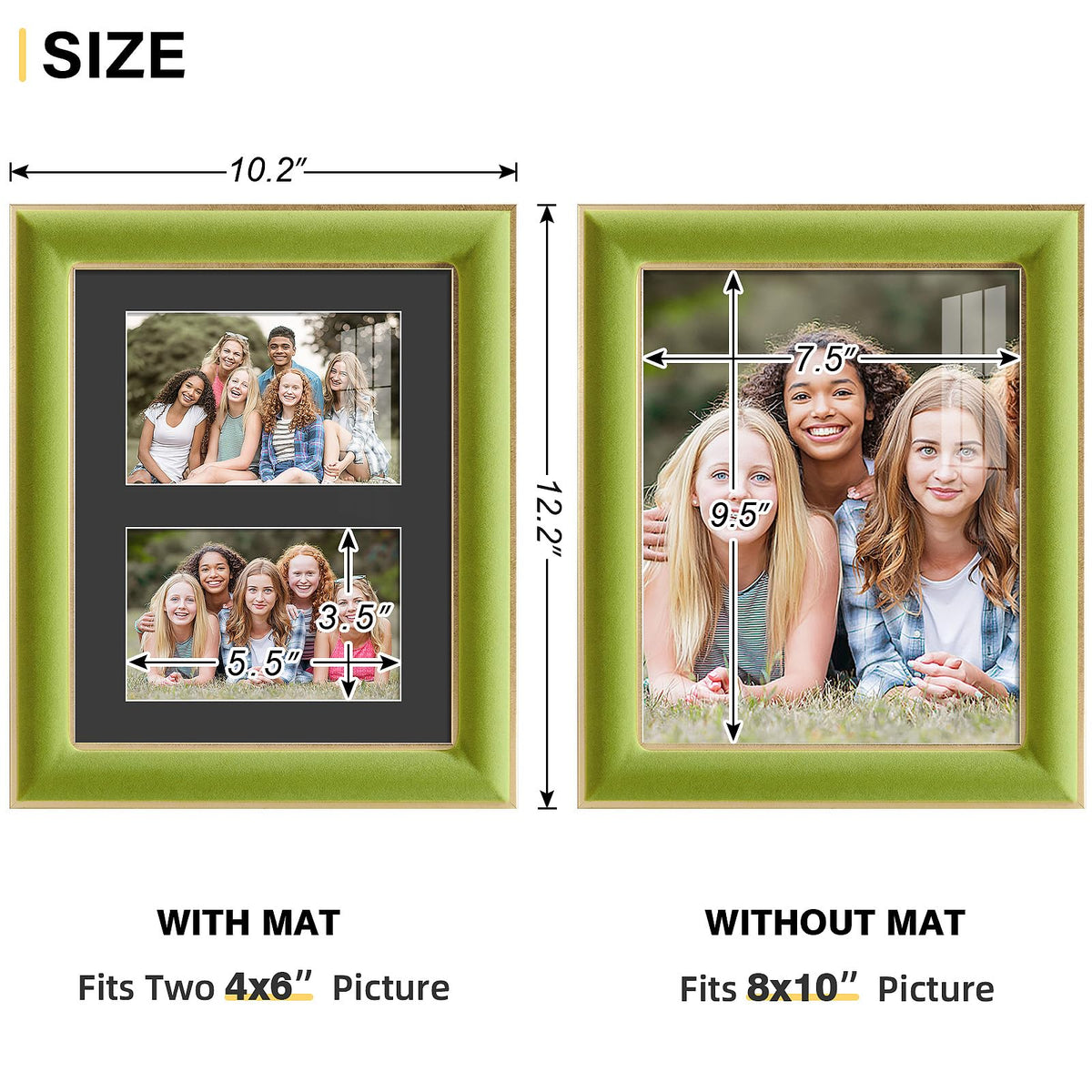 KSROECUD 8x10 Velvet Picture Frame with 2 Opening 4x6 Picture, HD Real Glass Light Green Velvet Photo Frame with Black White Bor