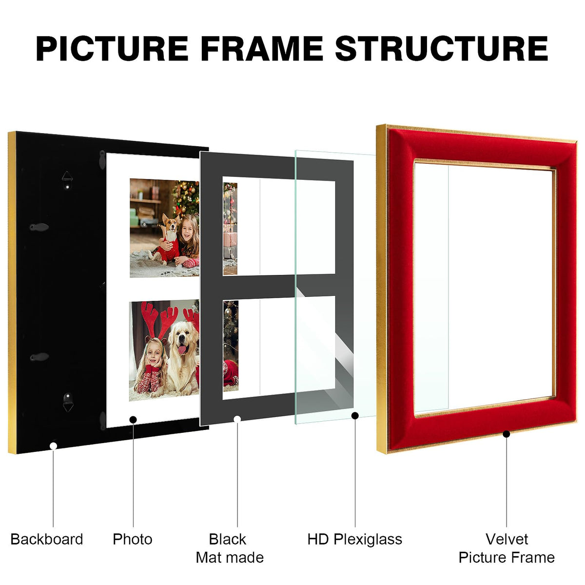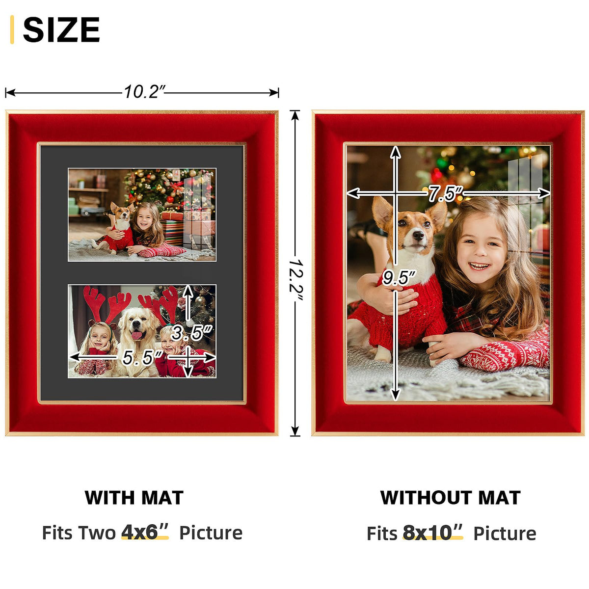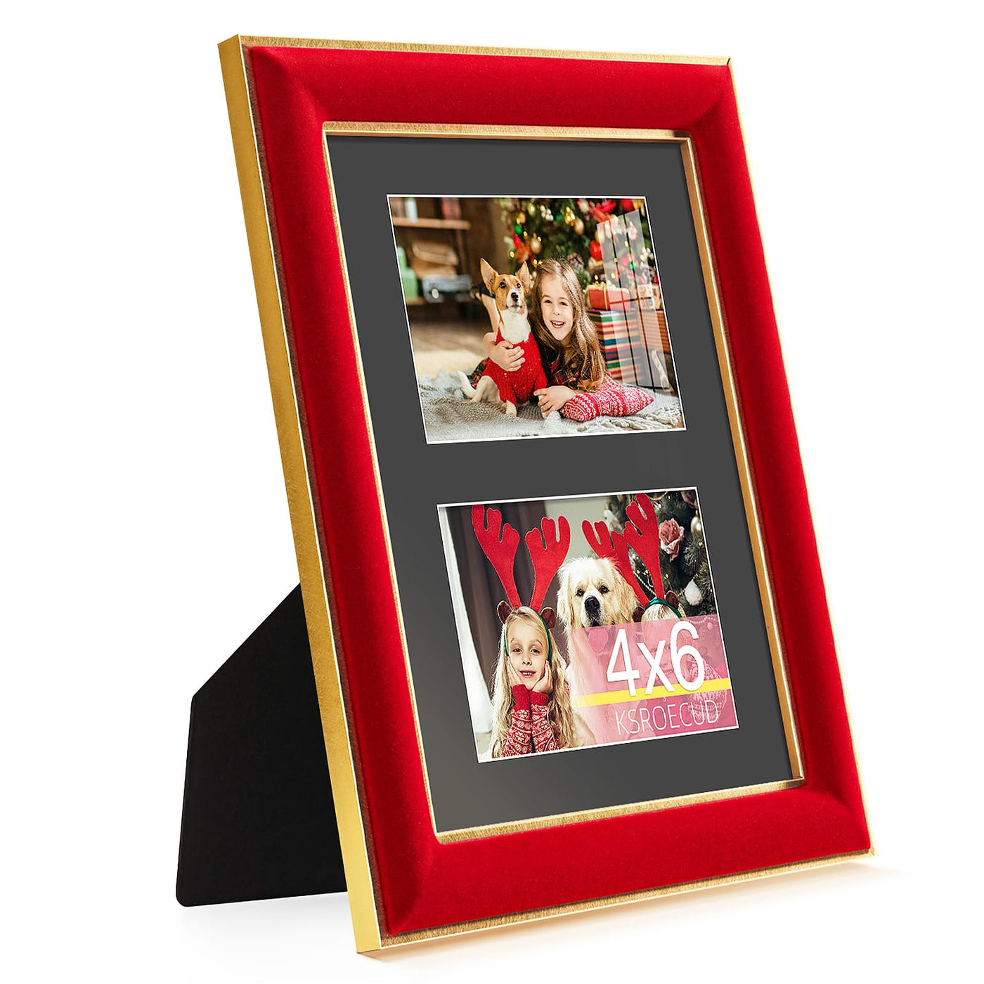 KSROECUD 8x10 Velvet Picture Frame with 2 Opening 4x6 Picture, HD Real Glass Red Velvet Photo Frame with Black White Border Mat,
