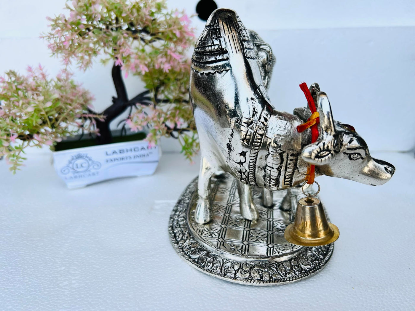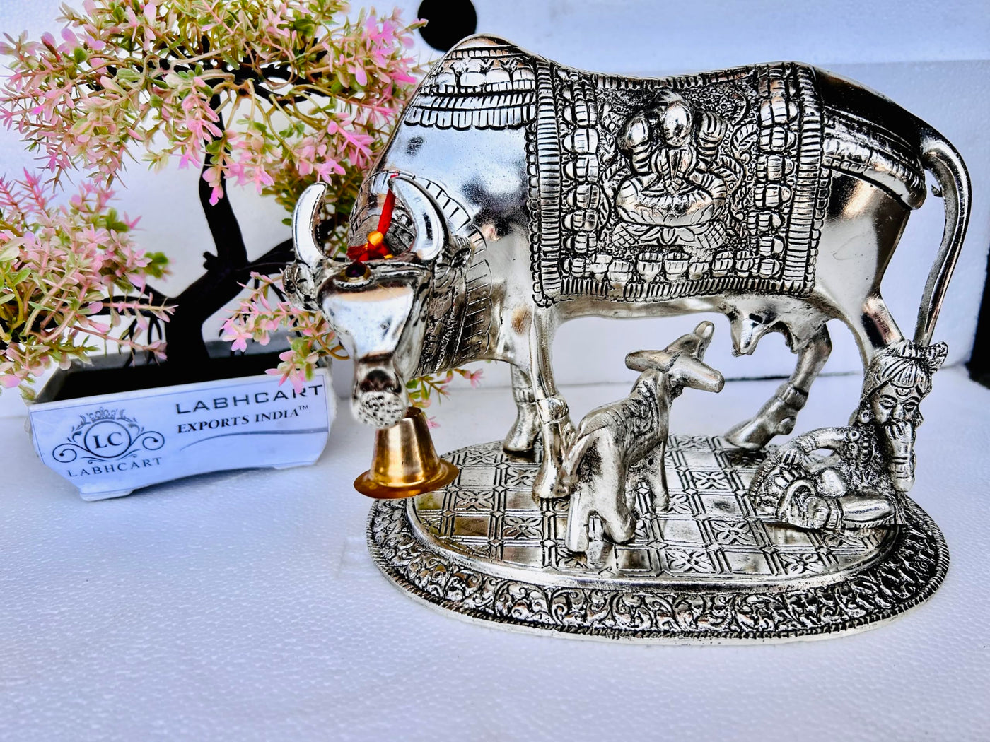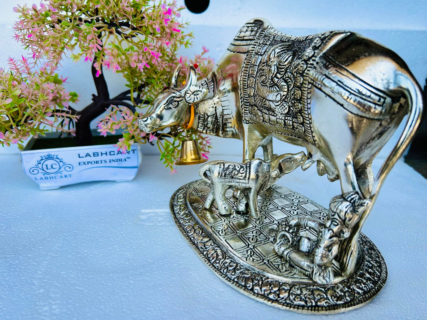 Labhcart Handcrafted Brass Action Golden Kamdhenu Cow With Calf,Vastu Gau Mata Idol,Spiritual Vastu Nandi Pooja Figurine Sculptu