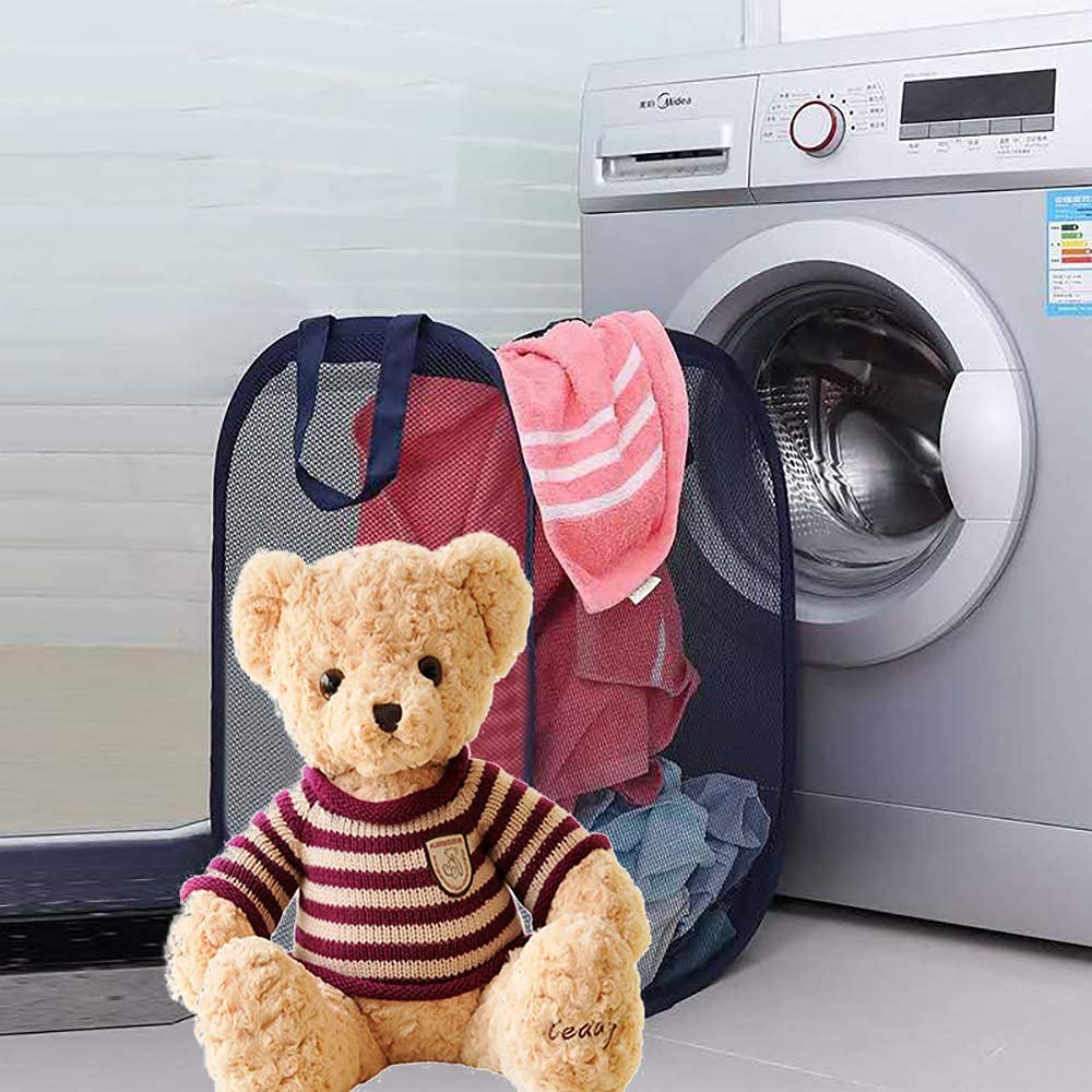 Larpur Popup Mesh Laundry Basket, Collapsible And Portable Clothes Washing Laundry Hamper With Reinforced Carry Handle (Blue)