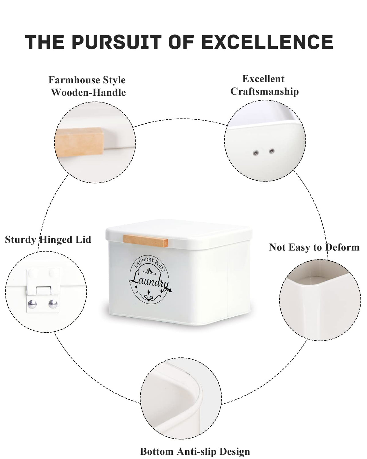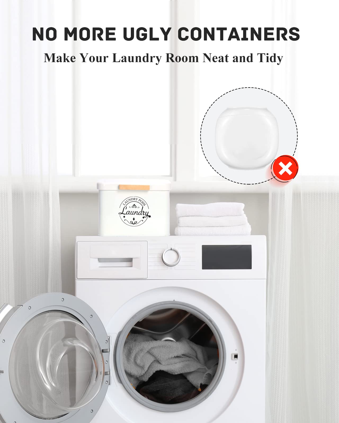 Laundry Pods Container With Hinged Lid. Farmhouse Metal Laundry Pods Holder Container For Laundry Room Decor. Laundry Room Organ