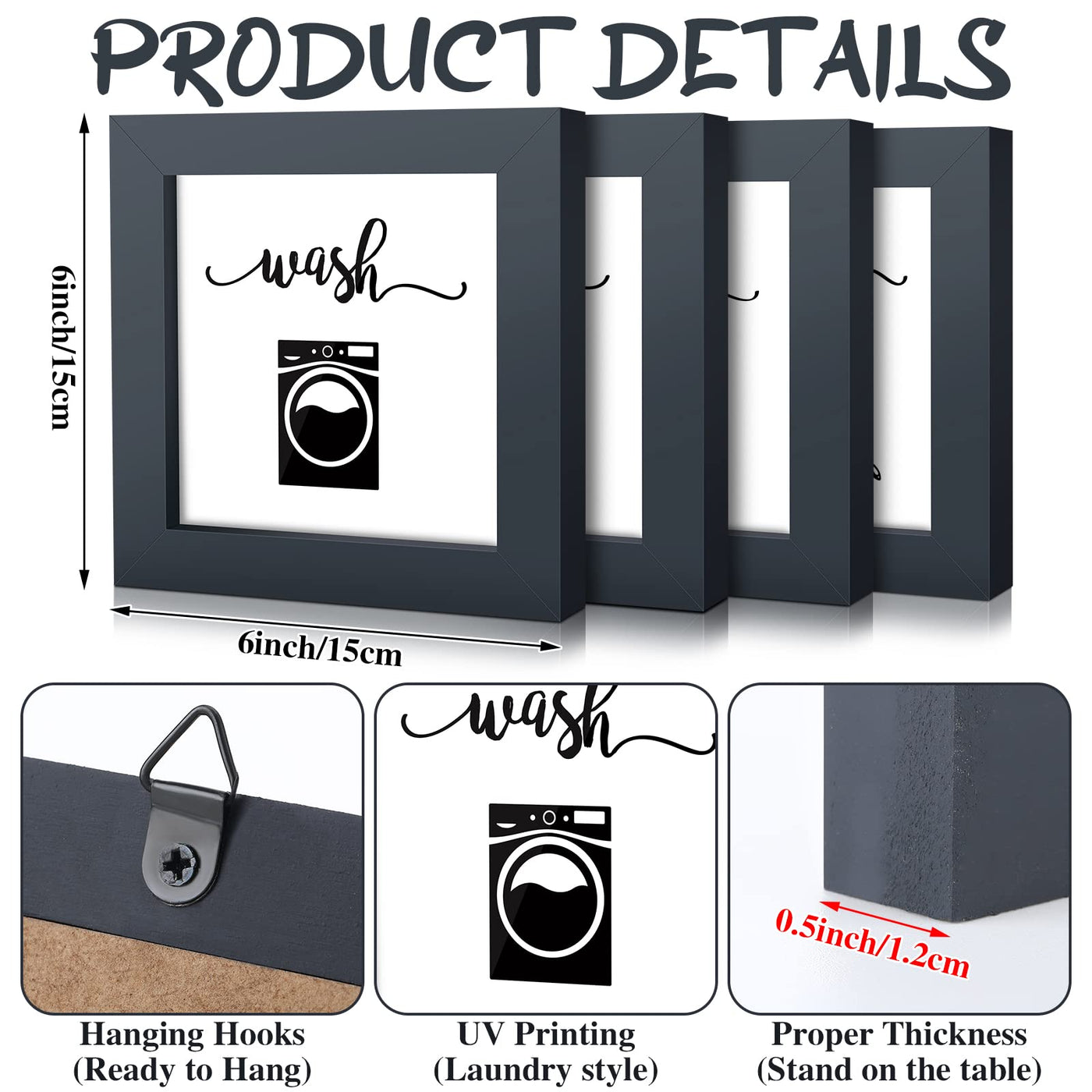 Features:Easy to hang: These room decorations are easy to install and remove with the design of hooks on the back, which can be applied as an independent sign on a desktop or shelf, also, they can be installed in order or individually according to your preference.A nice gift:These wood sign decors are nice housewarming gifts for your family, friends, neighbors, and colleagues, and they can be well integrated into most home decor styles. Specifications:Material: wood Color: as the pictures shown Size: approx. 20 x 20 x 2 cm/ 7.87 x 7.87 x 0.79 inchesPackage includes:4 x Laundry signsNotes:Manual measurement, please allow slight errors on size.The color may exist a slight difference due to different screen displays.