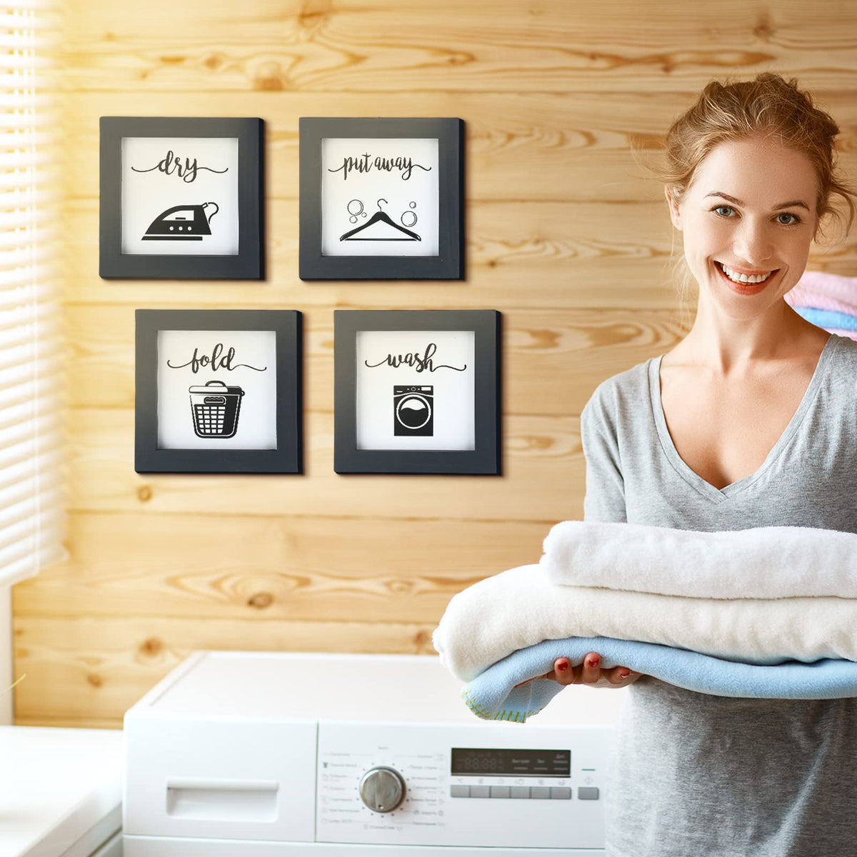 Laundry Sign Set of 4 Rustic Handmade Wood Wash Dry Fold Put Away Laundry Signs Wall Decor Wall Hanging Art Decor Wood Signs for