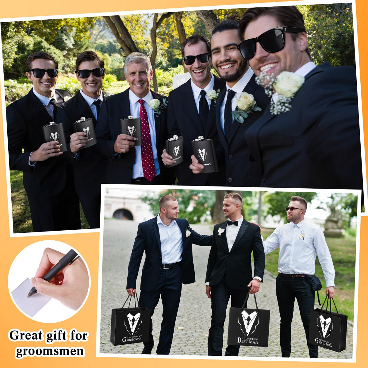Layhit 54 Pcs Groomsmen Gifts Set Of 6, Groomsmen Proposal Gift Set, 6 Flask And 12 Stainless Steel Shot Glass 6 Wood Bottle Ope